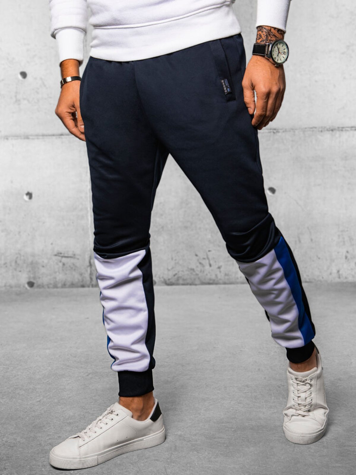 divatos férfi kocogó melegítőnadrág kényelmes vágás az övet zsinór szabályozza puha és kellemes tapintású anyagból készült a melegítőnadrág dereka és alsó része mandzsettával befejeződött két elülső zseb anyaga: 100% poliészter