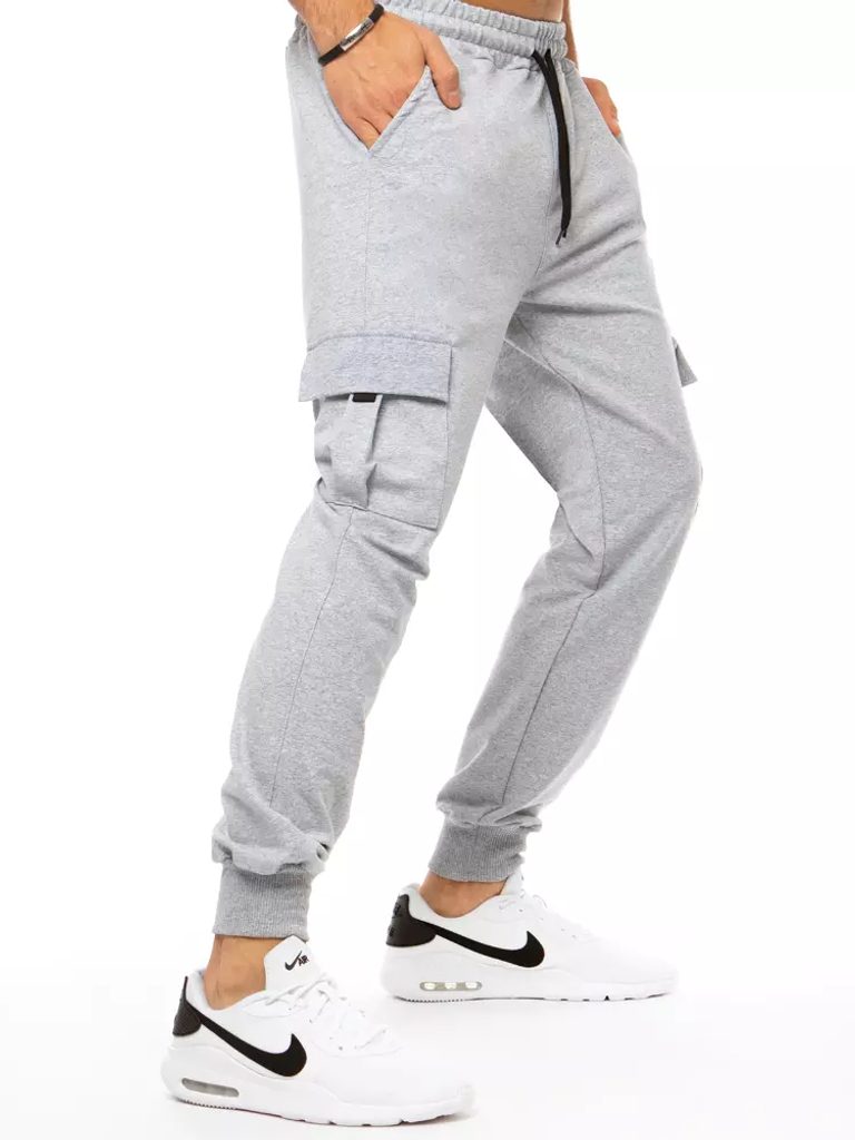 Szürke melegítő nadrág. Puha, kényelmes anyagból készült. Két benyulós zsebbel ellátva. Normál derékmagasságú, lezsér fazon, gumírozott nadrágszárakkal. Derékban gumírozott integrált öv és megkötő. Kétoldalt benyulós zsebek. Sportoláshoz garantáltan kényelmes. A hétköznapokon szuperül megállja majd a helyét.