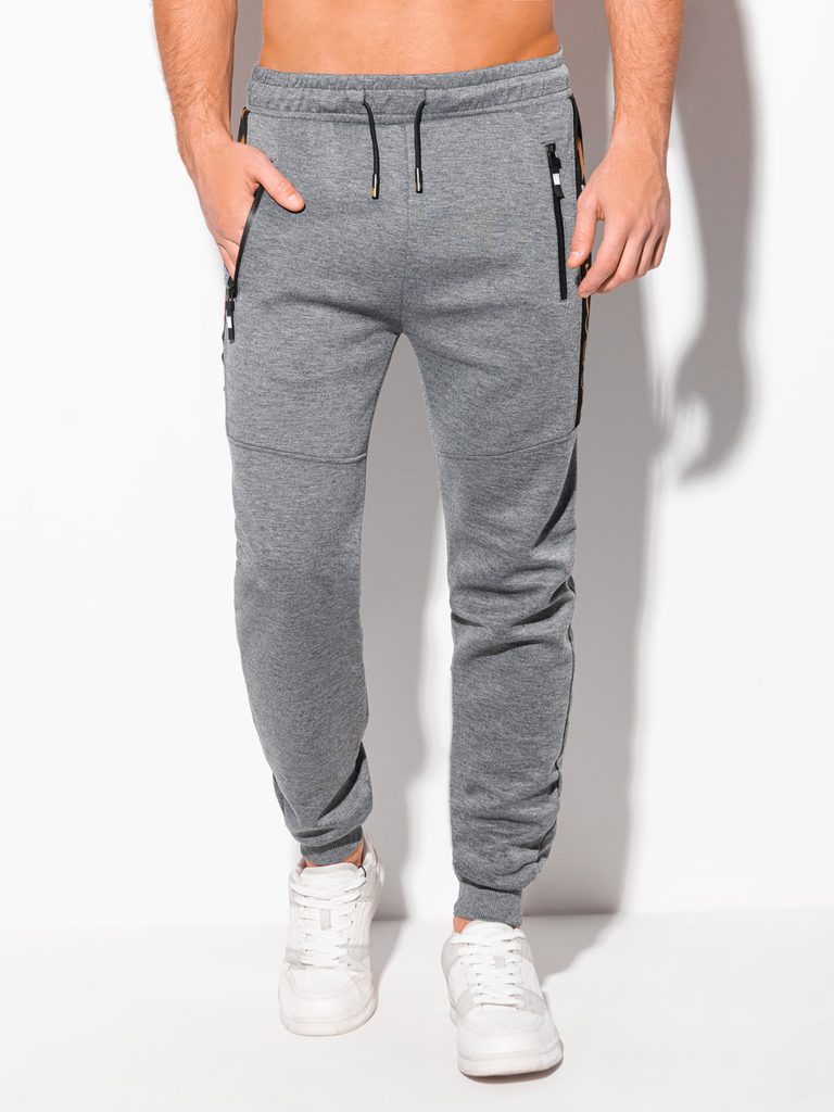 Szürke melegítő nadrág. Puha, kényelmes anyagból készült. Oldalsó csíkkal. Két cipzáras zsebbel. Normál derékmagasságú, lezsér fazon, gumírozott nadrágszárakkal. Derékban gumírozott integrált öv és megkötő. Kétoldalt benyulós zsebek. Sportoláshoz garantáltan kényelmes. A hétköznapokon szuperül megállja majd a helyét.