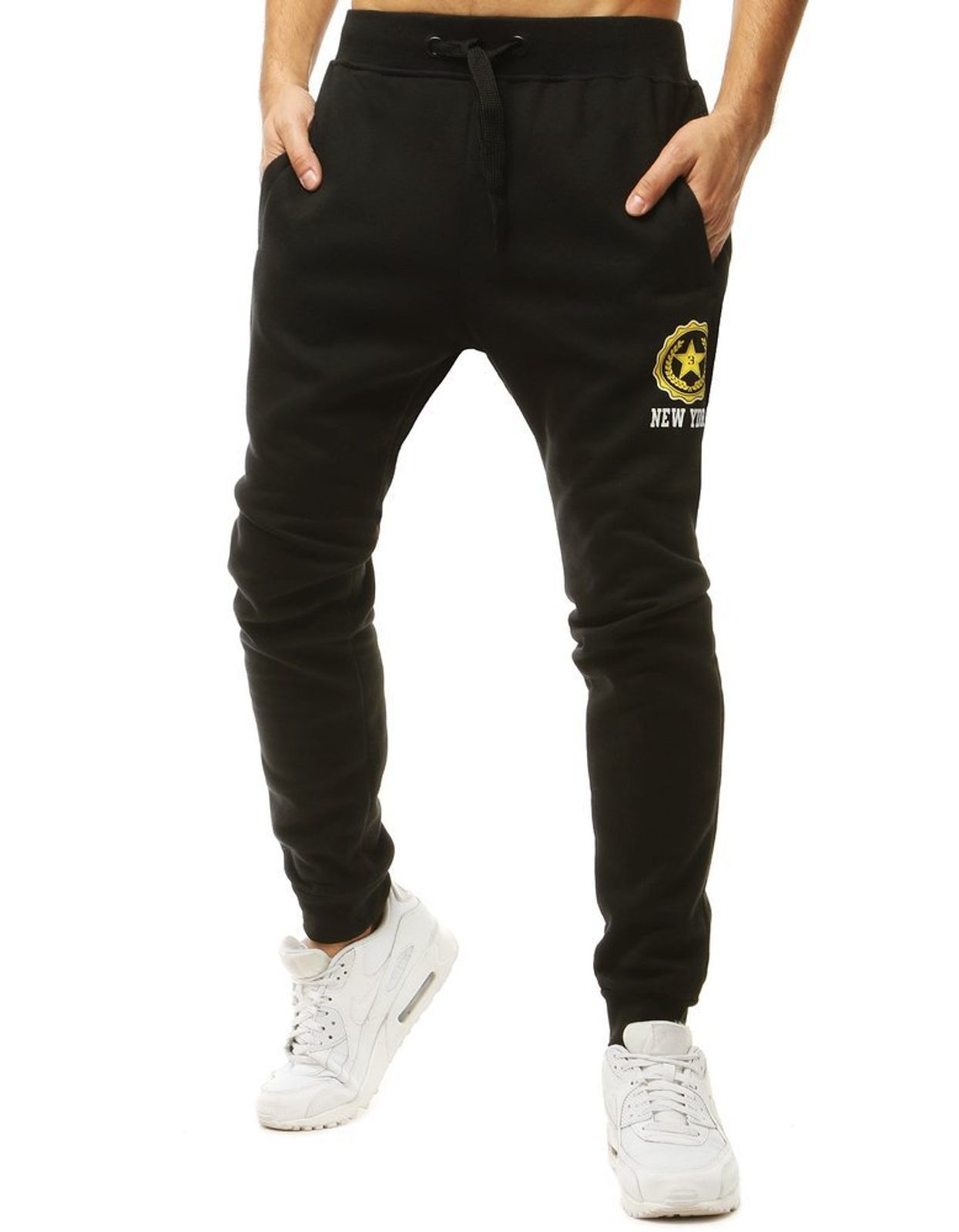 Ez a fekete lezser nadrág tökéletes szabadidőnadrágként viselhető a laza és elegáns szettekhez. Puha, kevert pamutanyagának köszönhetően kellemesen simul a bőrre, az elasztán pedig tökéletes illeszkedésről és rendkívül kényelmes viseletről gondoskodik. Rugalmas derékrész. Elöl két bevágott zsebbel látták el, a combrészen pedig lenyomattal.