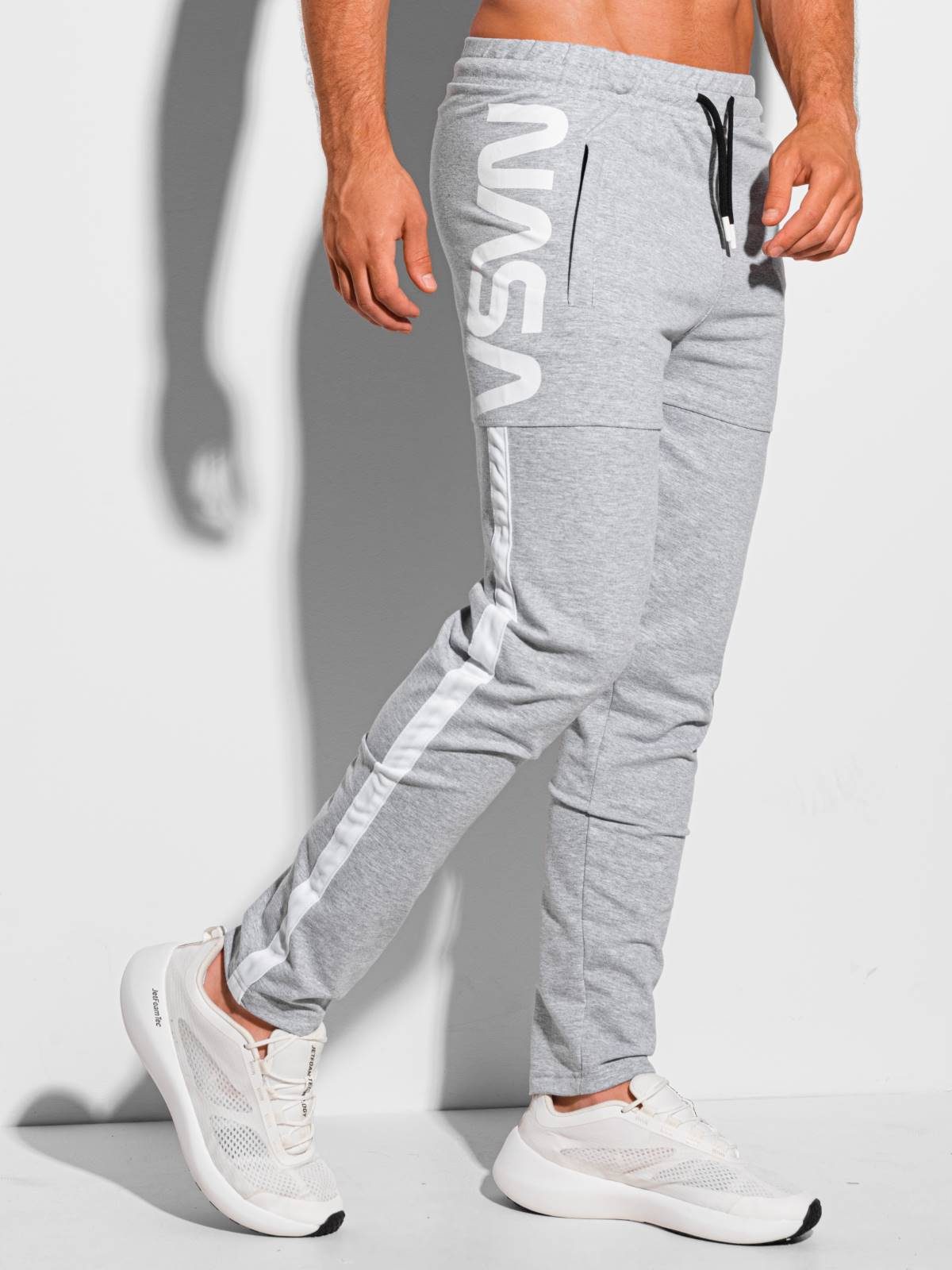 Halvány szürke színben. Enyhén rugalmas, kényelmes viseletet biztosító anyagból készült. Univerzális, bokáig érő fazon, testhezálló szárakkal. Gumírozott derékrésszel, zsinórdebúhással. Kétoldalt benyúlós zsebek. Fehér oldalsó csíkkal. NASA felirattal.
