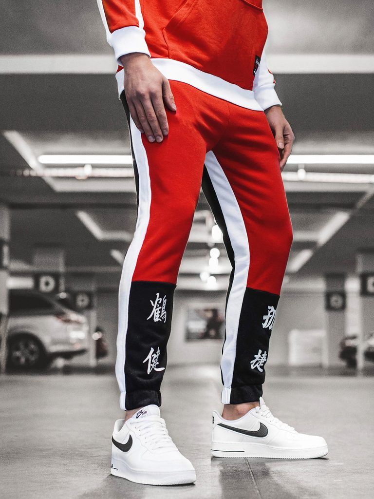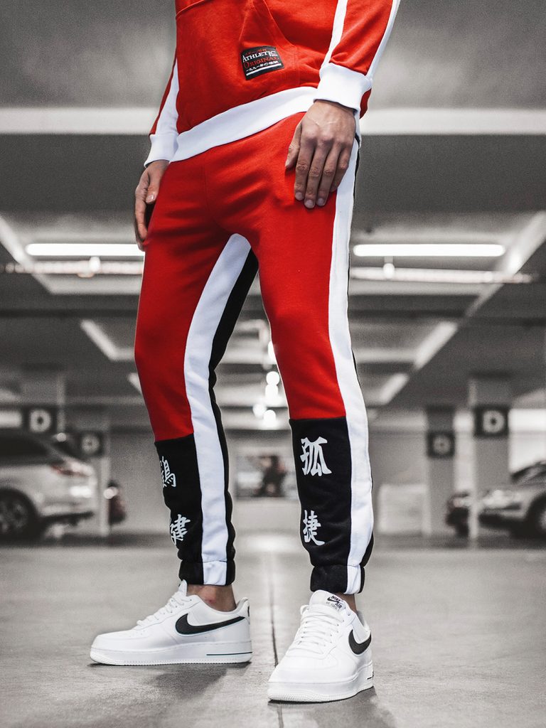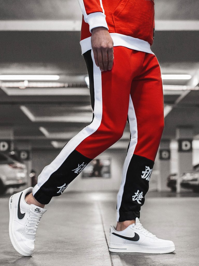 Kényelmes anyagból készült, piros melegítő alsó. Oldalsó csíkkal. Normál derékmagasságú, lezsér fazon, gumírozott nadrágszárakkal. Derékban gumírozott integrált öv és megkötő. Kétoldalt benuylós zsebek. Sportoláshoz vagy az iskolában, garantáltan kényelmes.