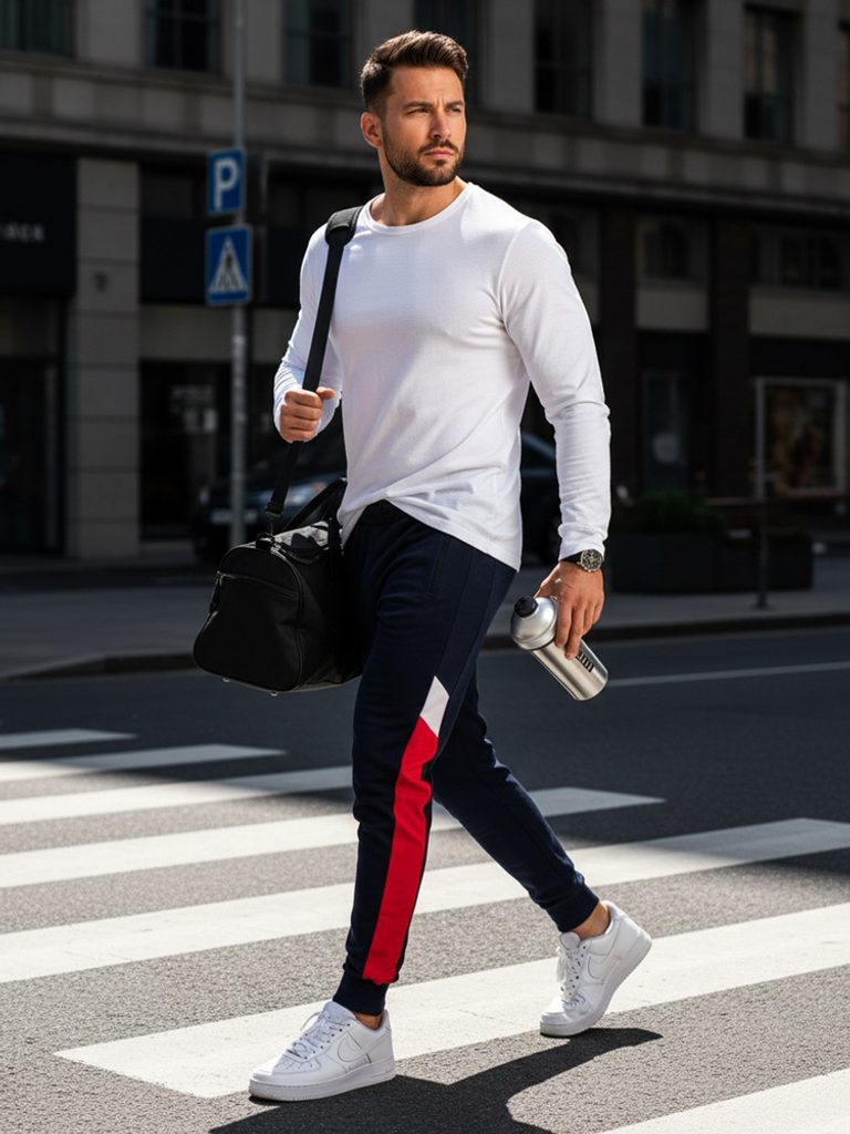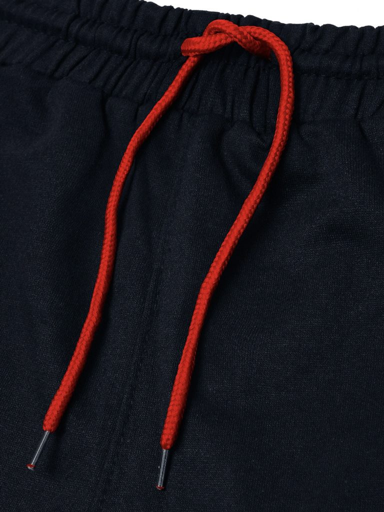 Divatos sötét kék melegítő nadrág. Kényelmes szabadidős viseletekhez és az otthoni nyugodt pillanatokhoz. Széles rugalmas derékrésszel és mutatós megkötővel, két cipzáras zsebbel. Oladalsó része színes betéttel. Formatartó, tökéletesen áll. Nadrágszárak alján passzé található, ami lezser stílust kölcsönöz a nadrágnak.