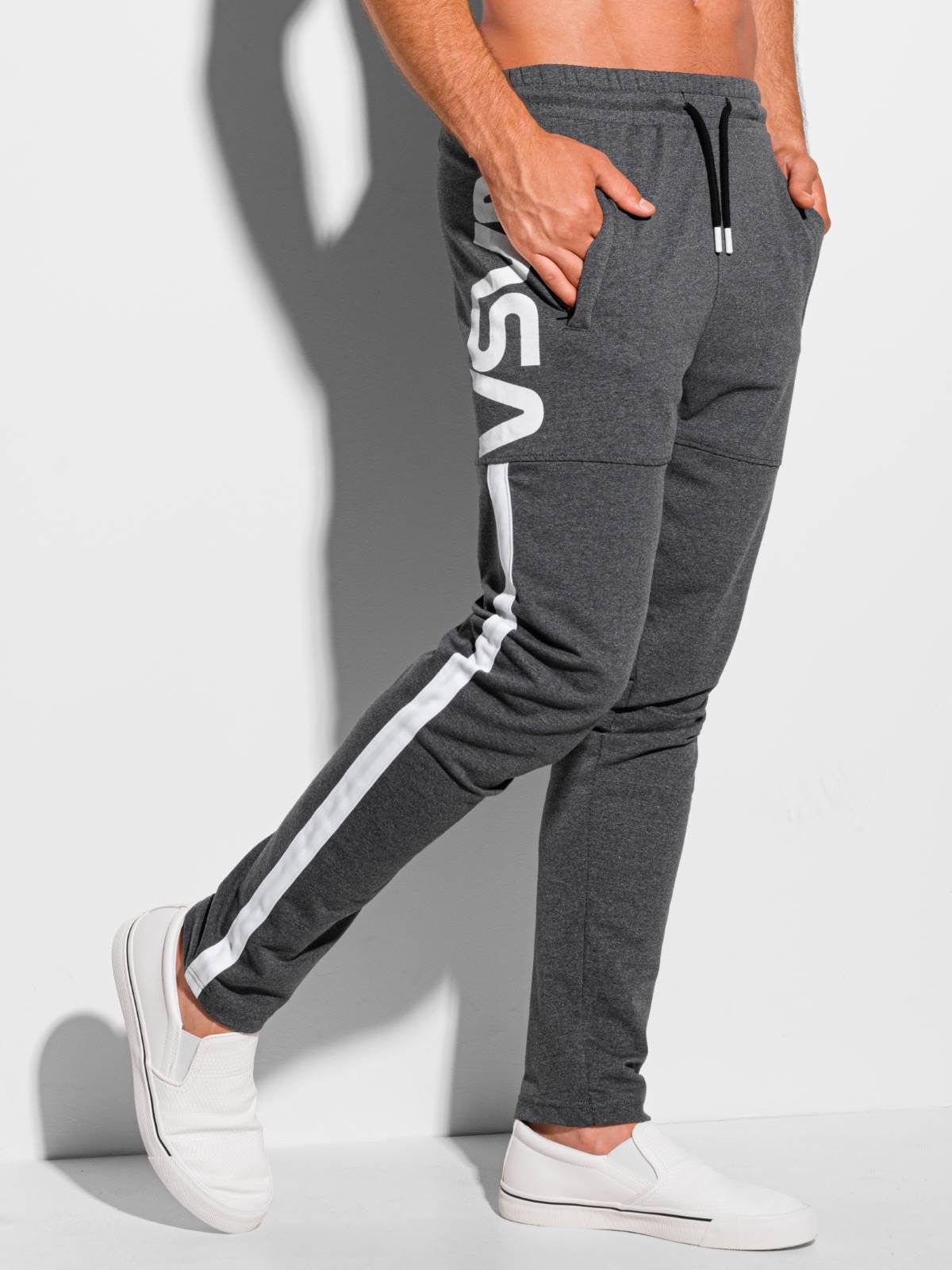 Sötét szürke színben. Enyhén rugalmas, kényelmes viseletet biztosító anyagból készült. Univerzális, bokáig érő fazon, testhezálló szárakkal. Gumírozott derékrésszel, zsinórdebúhással. Kétoldalt benyúlós zsebek. Fehér oldalsó csíkkal. NASA felirattal.