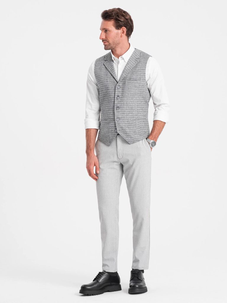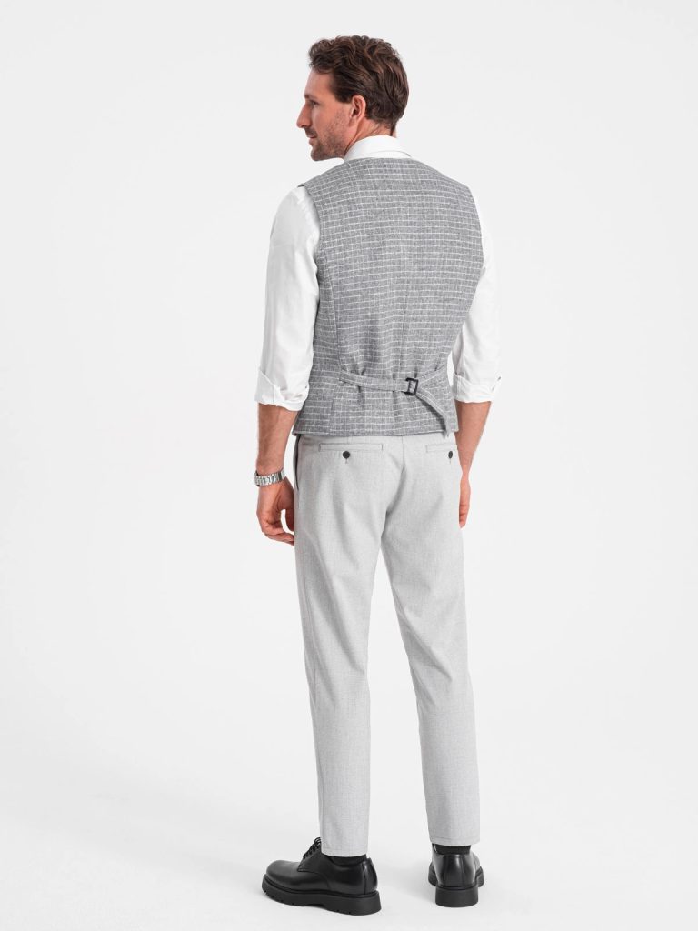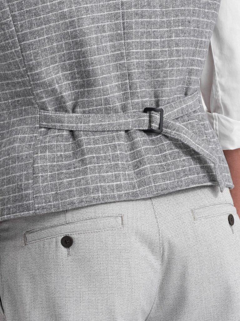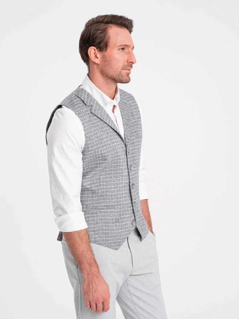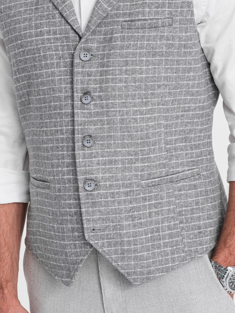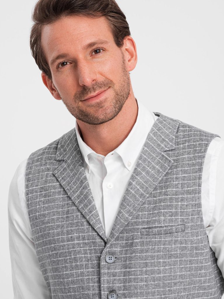 mellény elegáns kivitelben ellenőrzött minta gombokkal bekapcsolva a hátsó része állítható a mellény ideális formálisabb stílushoz két oldalzseb és egy mellzseb anyaga: 95% poliészter, 5% gyapjú