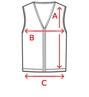 | Méret | Hossz A | Mell szélesség B | Alsó szélesség C |