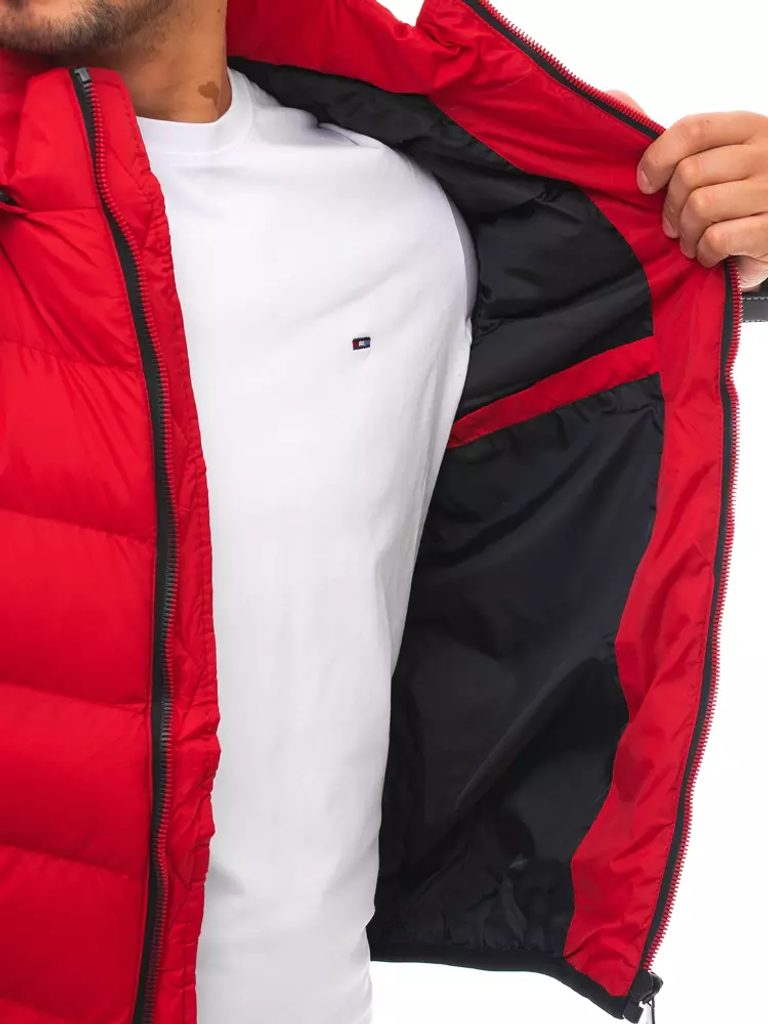 Kiváló minőségű stílusos piros steppelt melleény. Két cipzáras bevágott zseb, állógalléral és dupla hatású pamut kapucni ríteggel, zsinórbehúzással. A kapucni lekapcsolaható. Cipzárral összezárható. Ideális az átmeneti időszakra.