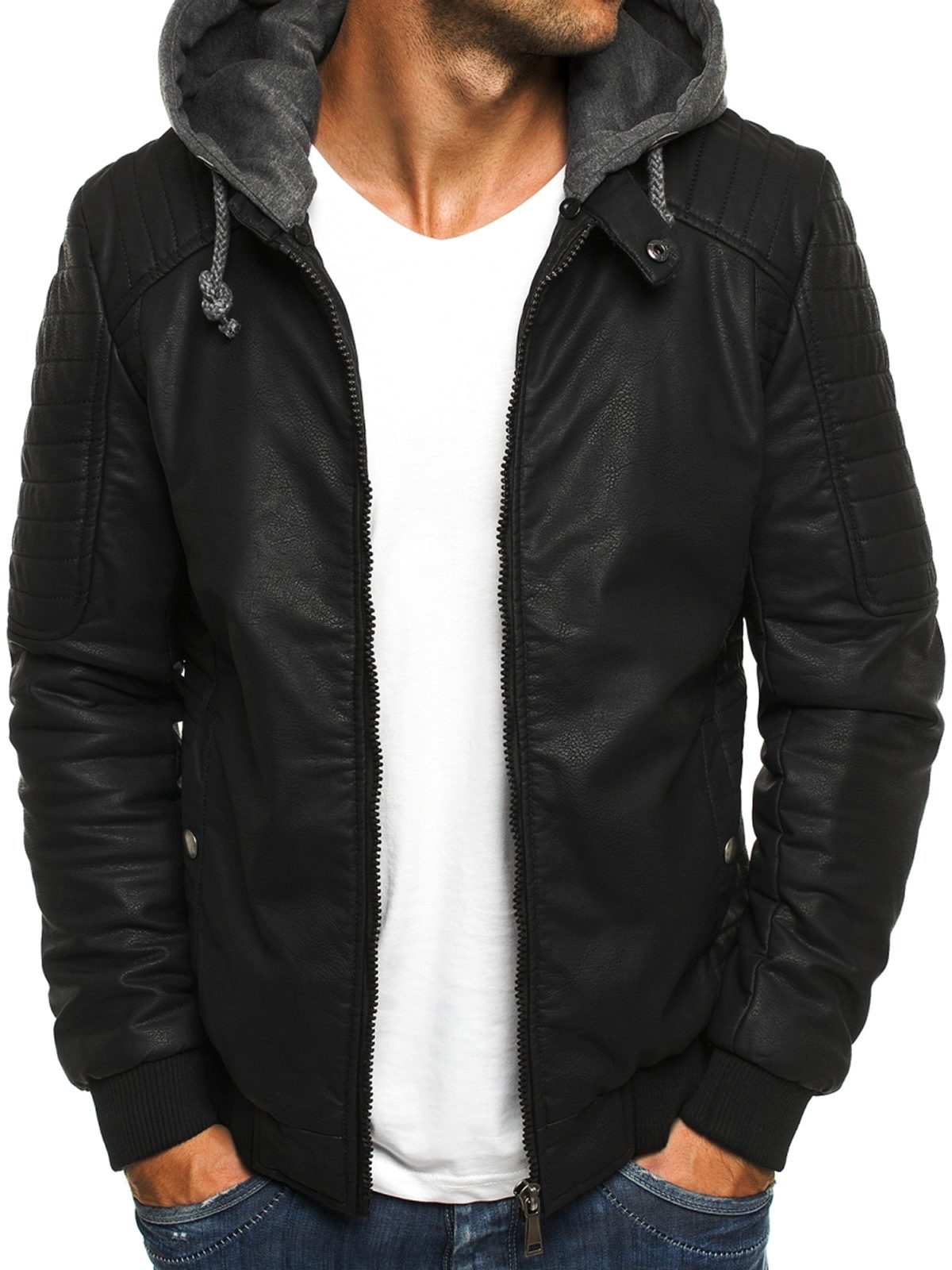 Stílusos, divatos bélelt bőrdzseki. Minden korcsoportnak megfelelő fazon. levehető kapucnival. Cipzárral. Két gombolással záródó olalsó zseb. Egy belső zseb.Finom műszőrmés béleléssel. Oldalán, vállrészen és az ujjakon tűzésekkel. felejthetetlen megjelenést biztosít egy jól választott farmernadrággal.