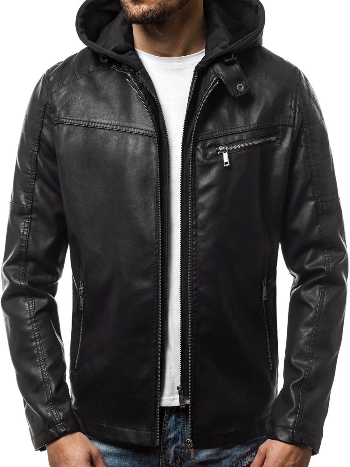 Ebben a bőrdzsekinkben férfias és a sportos stílus egyszerre dominál. Praktikus viseletet nyújt egyben. Az esős őszi időre kiváló választás lehet. Pamut anyagból készült kapucnival. Praktikus és divatos kiegészítője divatos kiegészítője az őszi téli szezonnak. Két cipzárral rögzített oldalsó zsebbel, és egy mellzsebbel.
