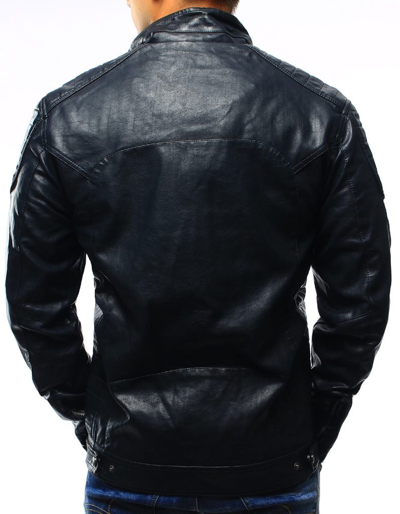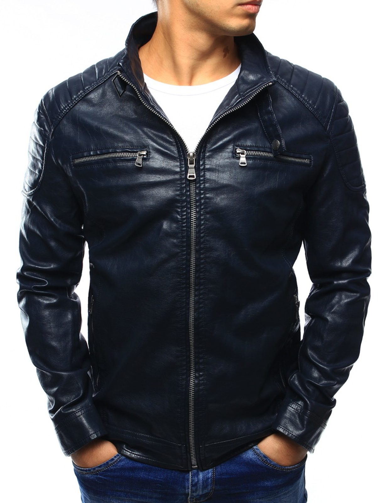 Univerzális stílusú, időtálló sötét kék dzseki. Kiváló minőségű, kitartó öko bőrből készült, alatta kellemes viseletet biztosító szatén bélés. Alakra szabott fazon, hosszú ujjakkal és patentkapcsos rögzítésű, kis állógallérral. Elöl fémes cipzár, kétoldalt zsebek Minden fémes elem ezüst színű. Csípőig érő hossz.