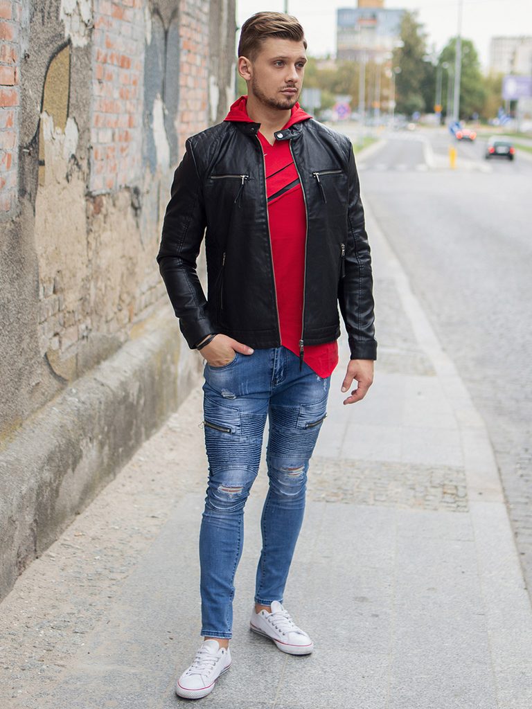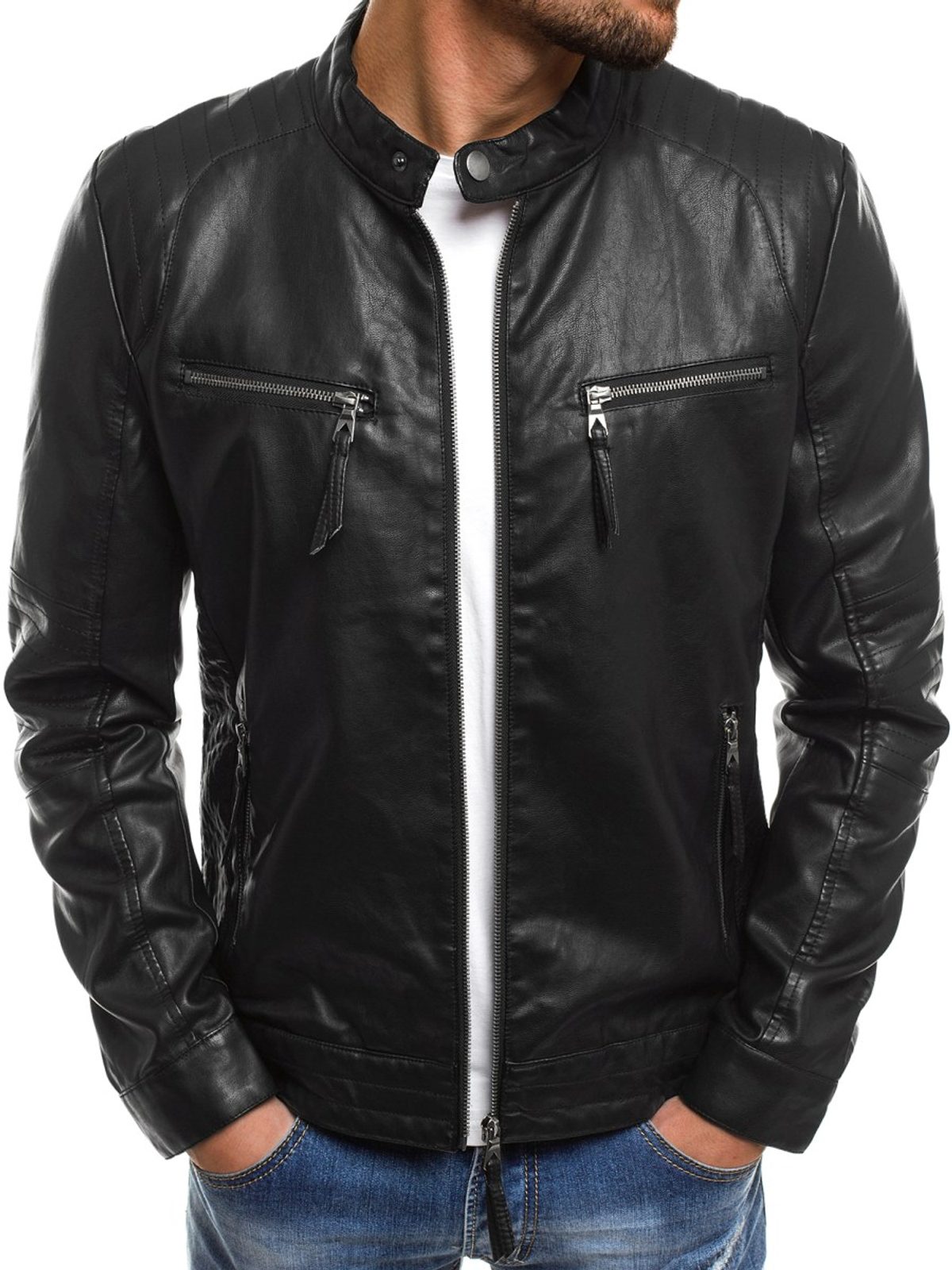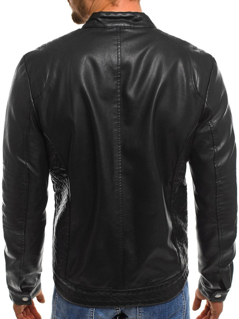 Univerzális stílusú, időtálló fekete öko bőr dzseki. Kiváló minőségű, kitartó öko bőrből készült, alatta kellemes viseletet biztosító szatén bélés. Alakra szabott fazon, hosszú ujjakkal és patentkapcsos rögzítésű, kis állógallérral. Elöl fémes cipzár, kétoldalt zsebek Minden fémes elem ezüst színű. Csípőig érő hossz.