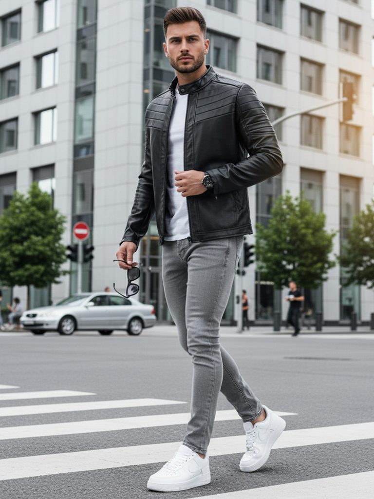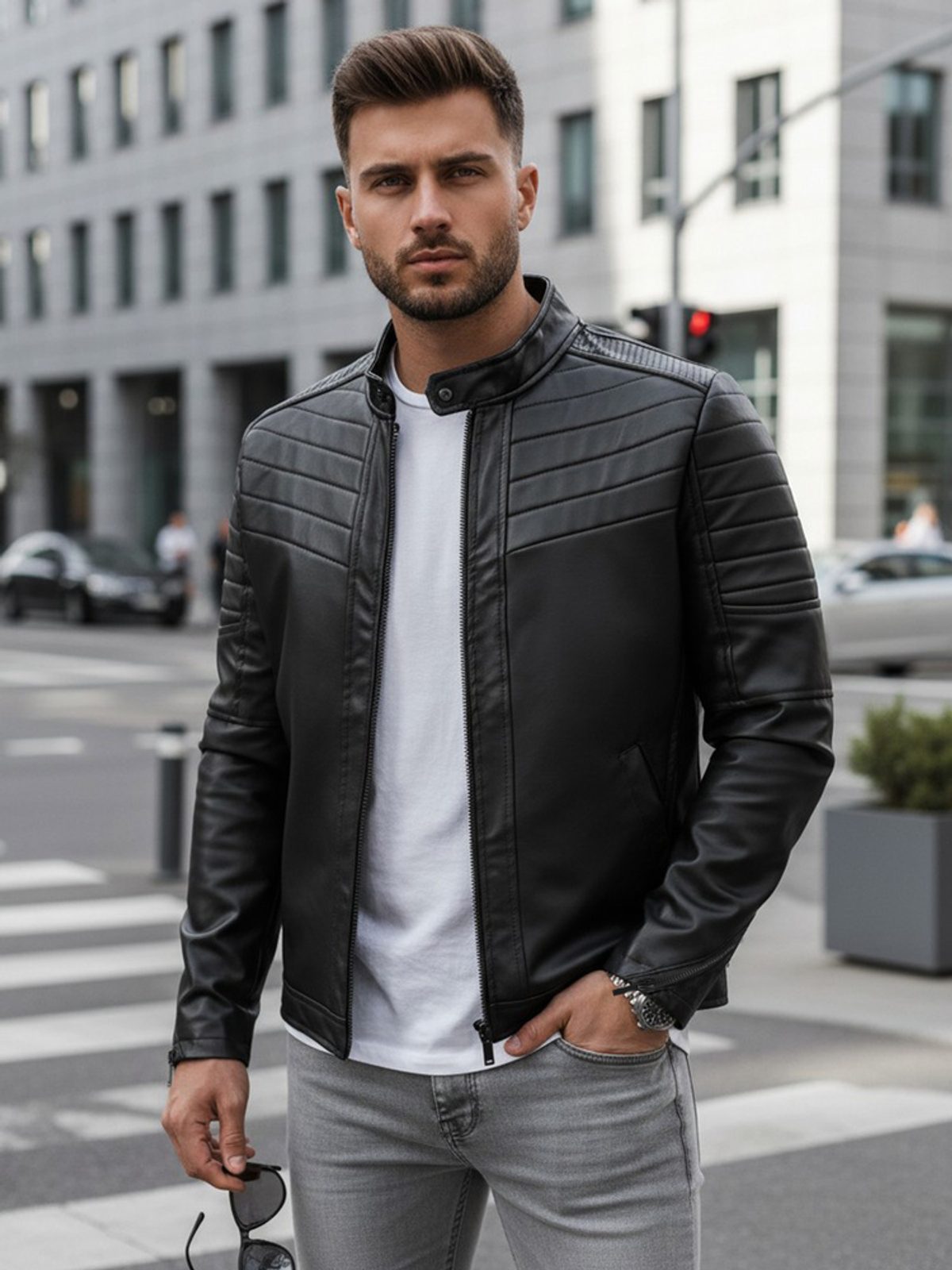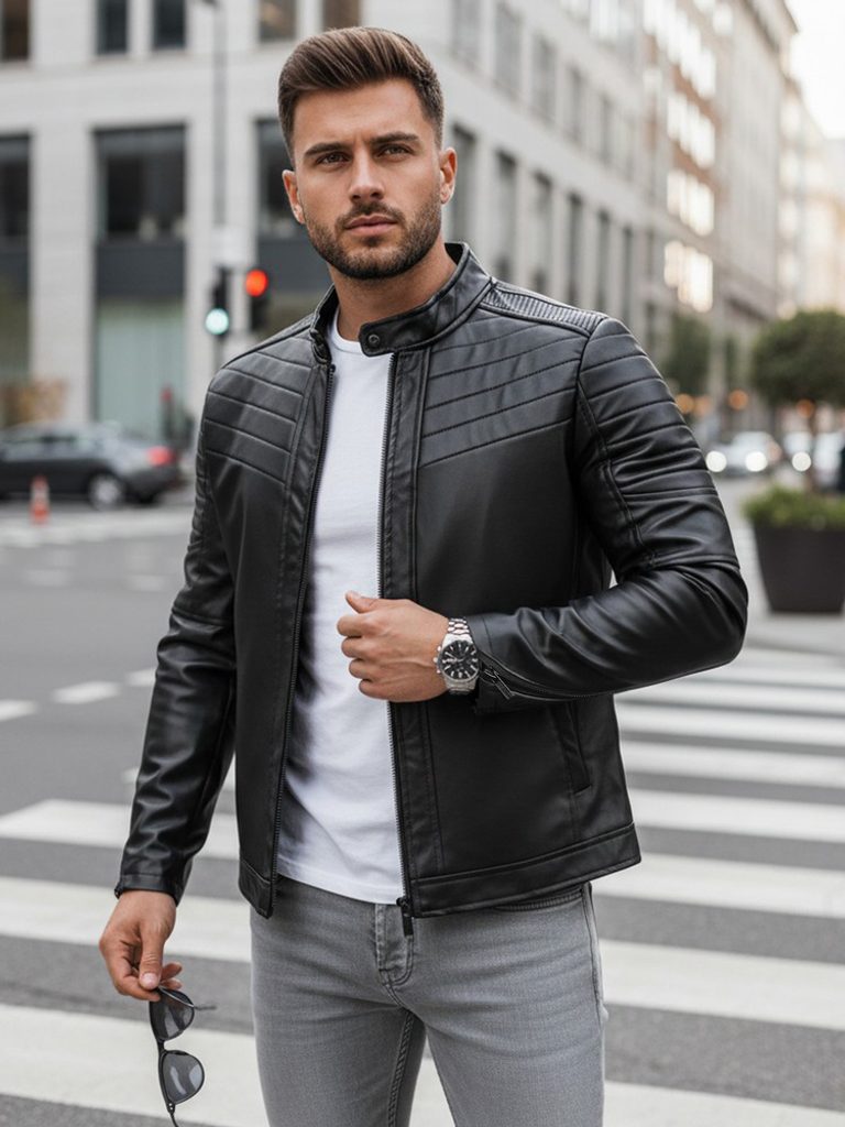 - modern férfi bőrdzseki