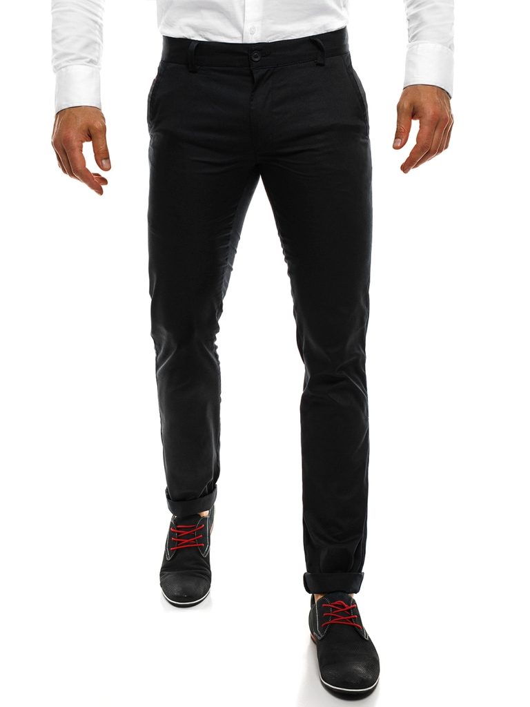 Stílusos, klasszikus chino nadrág. Elegáns fekete színben. Puha, kellemes viseletet biztosító pamut anyagból készült. Enyhén testhezálló fazon, normál derékmagassággal, hosszú, lefelé szűkülő, alul visszahajtott lábszárakkal. Kétoldalt benyúlós zsebek, hátul két farzseb. Derékban övbújtatók. Elegáns, időtálló nadrág, melynek minden férfi szekrényében ott a helye. Számtalan alkalmi és hivatalos szetthez megfelelő darab.