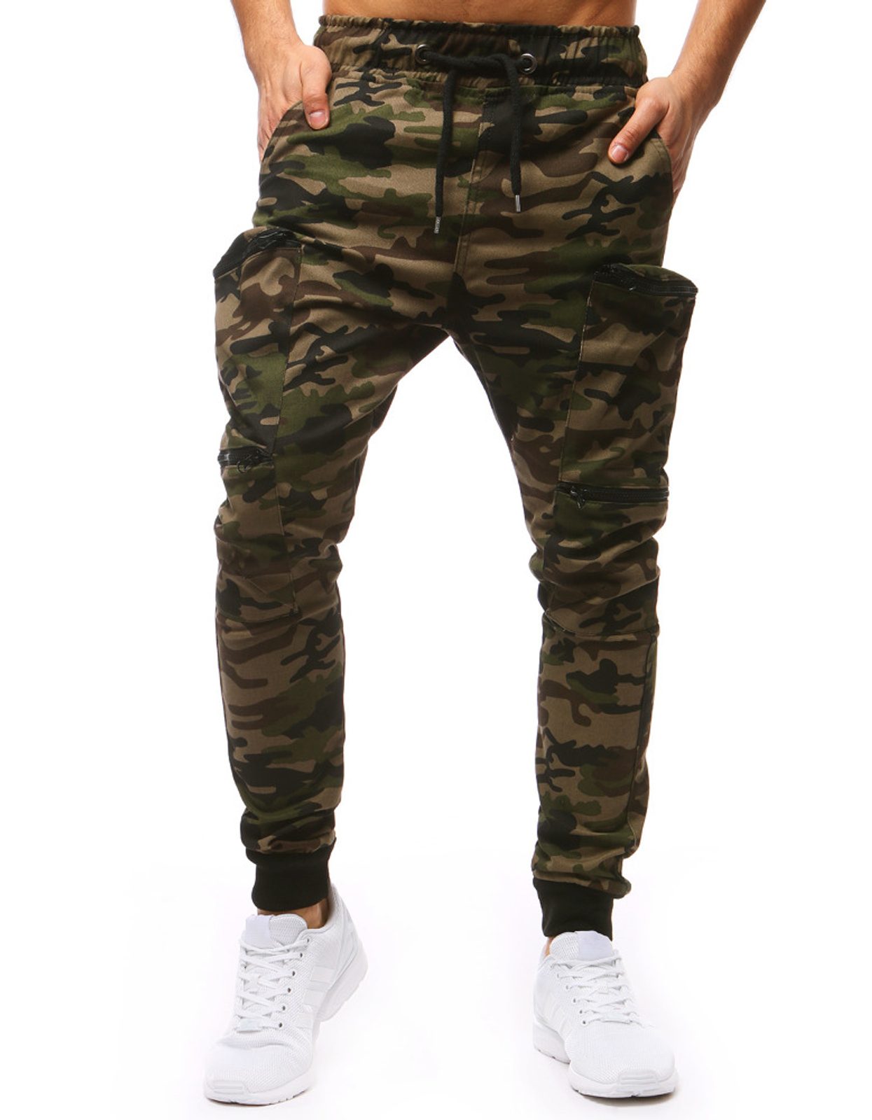 Ez egy szűkített szárú, kényelmes szabadidő nadrág a lezsér stílus kedvelőinek. Zöld terepmintás kivitelben. Elül benyulós zsebbel, két hátsó zsebbel. A lábszár zsebfedős zsebekkel ellátva. Egy kényelmes sportcipővel és egy trendi pólóval kombinálhatod. Bokarésznél gumírozott.