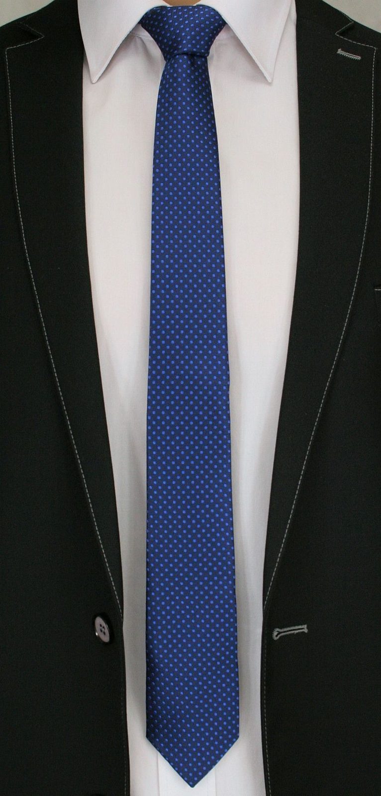 Sötét kék nyakkendő fehér pöttyözéssel. A pöttyös nyakkendőkkel is jól lehet variálni az öltözködést, érdemes bővíteni az otthoni választékot. Ez a trendi, fekete nyakkendő elegáns megjelenést biztosít.