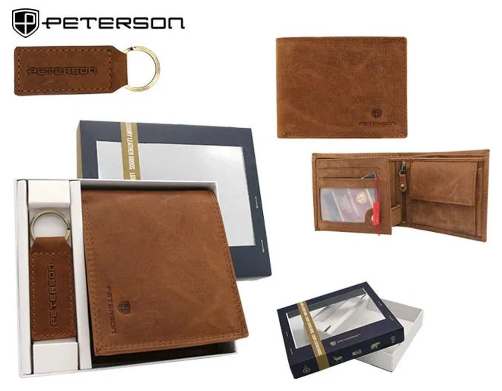 Az elegáns férfi pénztárca és a praktikus kulcstartó kiváló minőségű bőrből készült. A divatos kialakítású pénztárca bőséges tárolóhellyel és RFID-rendszerrel rendelkezik. A pénztárca bankjegyek (2 rekesz), névjegykártyák, hitelkártyák (5 rekesz) és egy érmés tok számára kialakított rekeszeket tartalmaz.