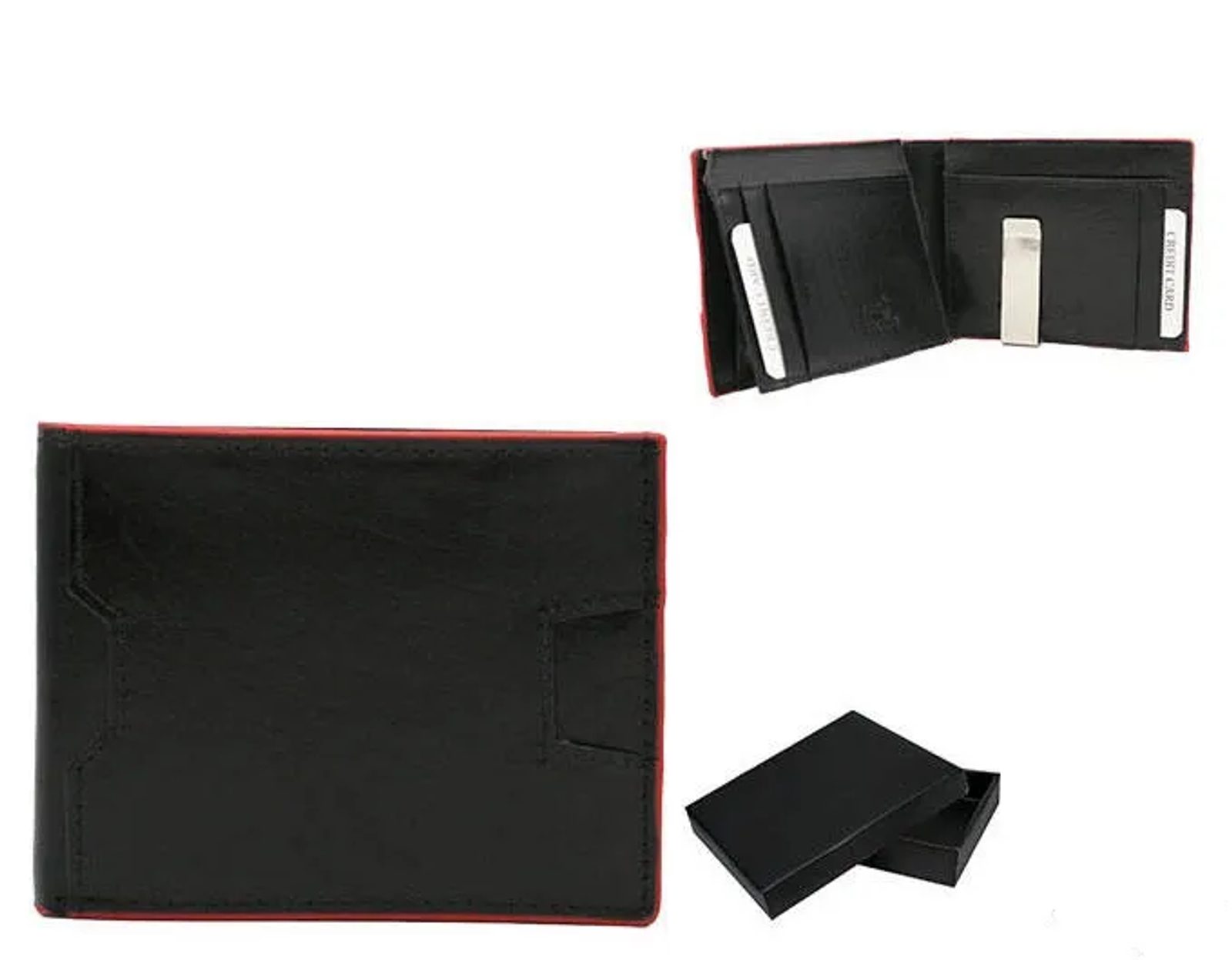 A bőr férfi pénztárca kiváló minőségű anyagból készült. A divatos kialakítású pénztárca egy tárolórekesszel rendelkezik. A pénztárca bankjegyek, névjegykártyák, hitelkártyák és egy érmezseb számára kialakított rekeszeket tartalmaz.