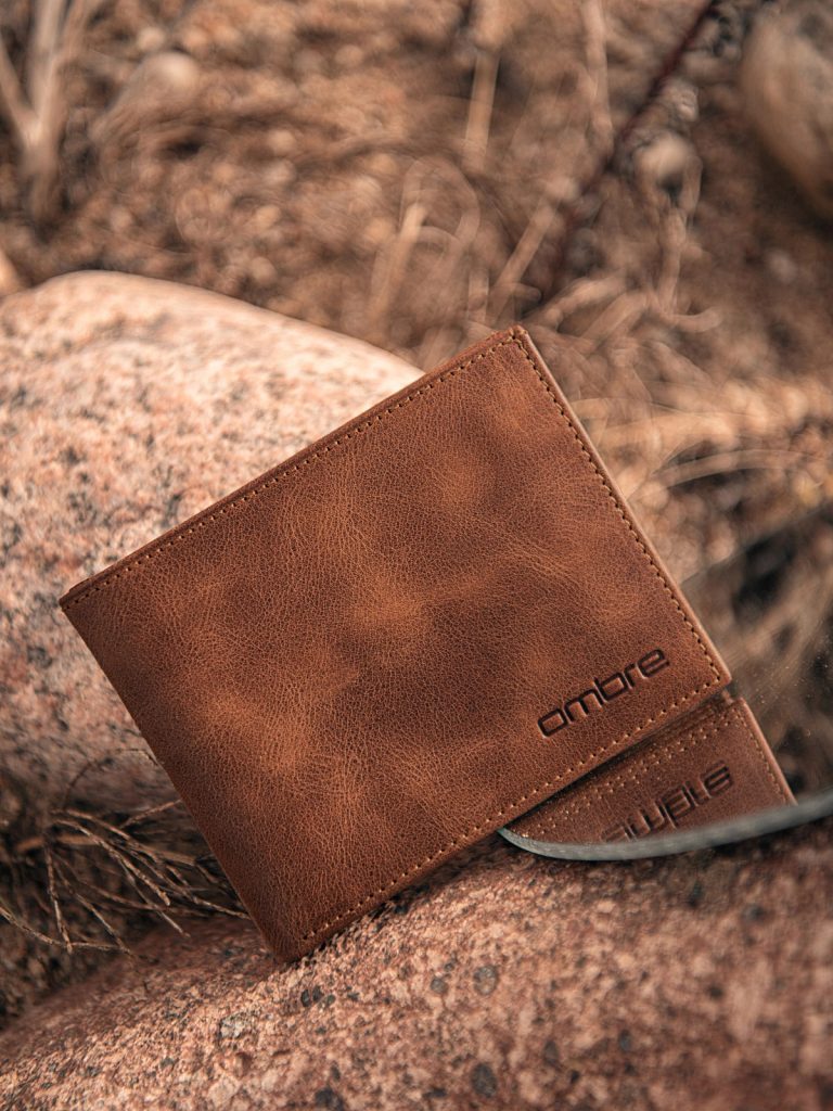 A pénztárca elején Ombre logó található. A pénztárcában két rekesz található a bankjegyek és a hitelkártyák vagy névjegykártyák számára.