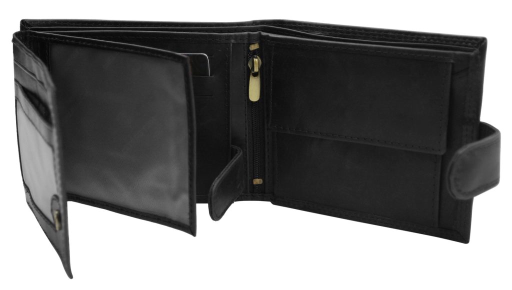 Elegáns kialakítású, minőségi bőrből készült pénztárca. A pénztárca modellje a szélességhez igazodik. Ez a modell praktikus csattal van ellátva. A belső térben több rekesz található, amit mindenki értékelni fog, aki szereti együtt tartani a hitelkártyáit, kártyáit és egyéb dolgait. Az RFID-védelem magától értetődő.