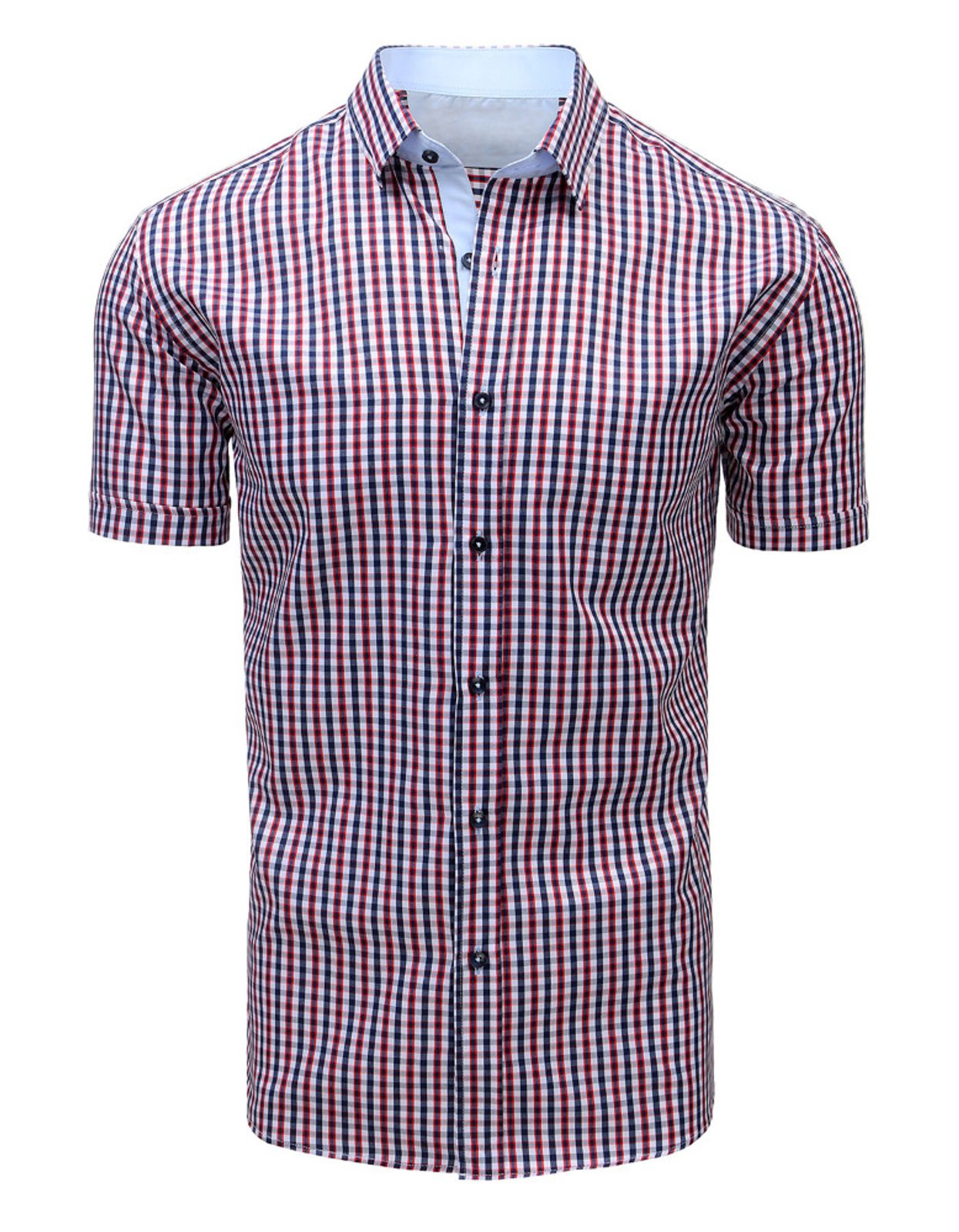 Feltűnő rövid ujjú, finom anyagból készült karcsúsított SZLIM FIT szabású ing. Piros, kék színkombinációban. A gomboláspánt belső része fehér színben. Bátran viselheten hétköznapokon.