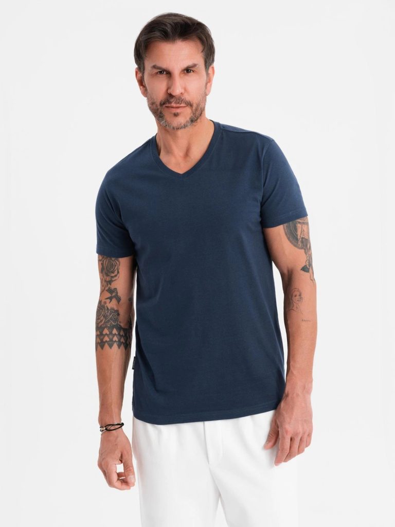 Basic pamut sötétkék V-nyakú póló V2 TSBS-0237