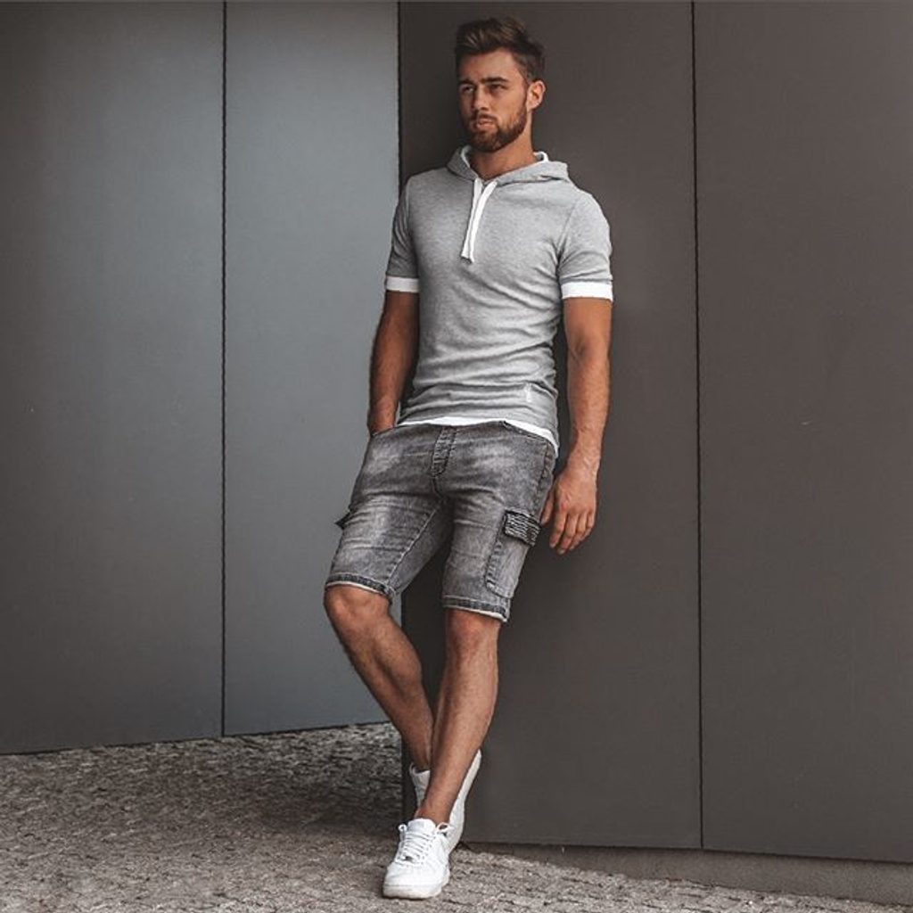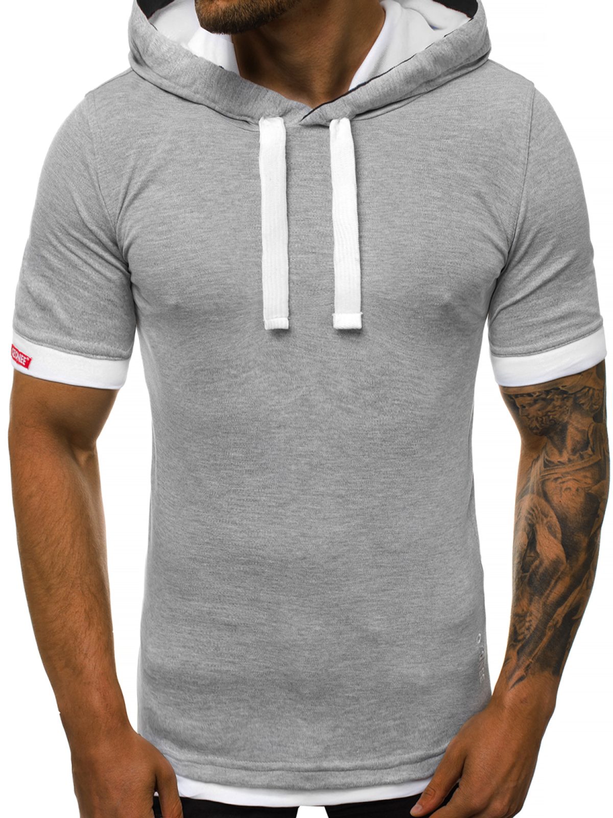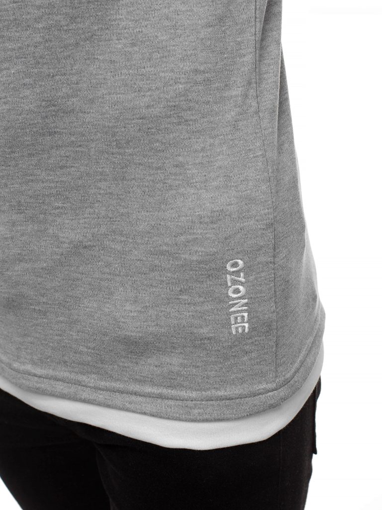 Egyszínű szürke kapucnis póló. Pulóver hatású, kapucnis kivitelben. Kiváló minőségű, puha, rugalmas anyagból készült. Klasszikus, enyhén testhezálló fazon. Az alja lekerekétett, réteges hatással.