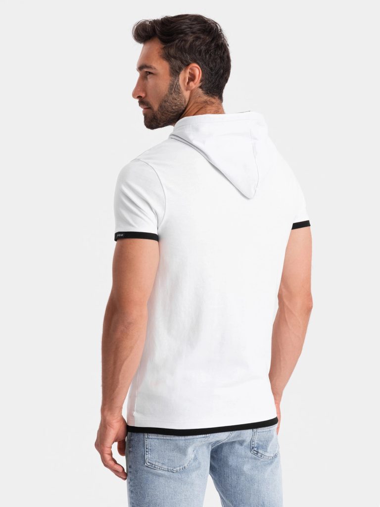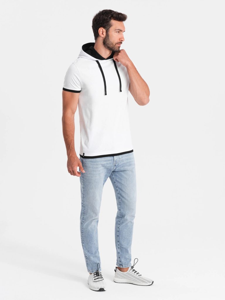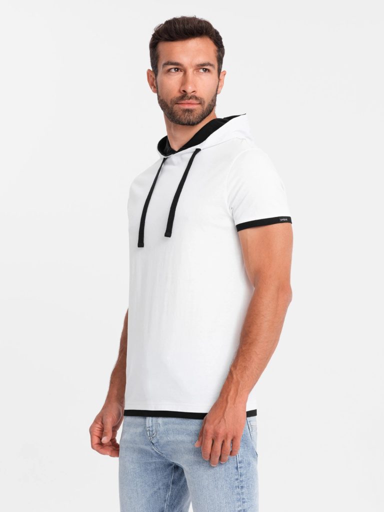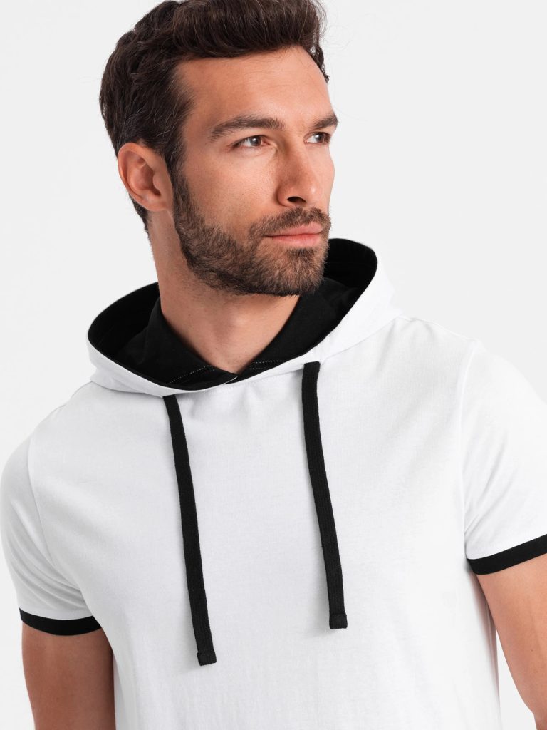 férfi póló nyomat nélkül Kapucnival ellátott póló kontrasztos színek kerek nyakkivágás rövidujjú anyaga: 100% pamut