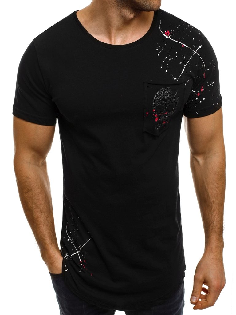 Fekete alapon színes festék fröcskölt mintás póló. A mell zseben egy koponya ábra található. Minőségi anyagból, mely komfort érzetet nyújt viselőjének. Nagyon jól kombinálható egy szűk fazonú, farernadrággal vagy pedig melegítő nadrággal.