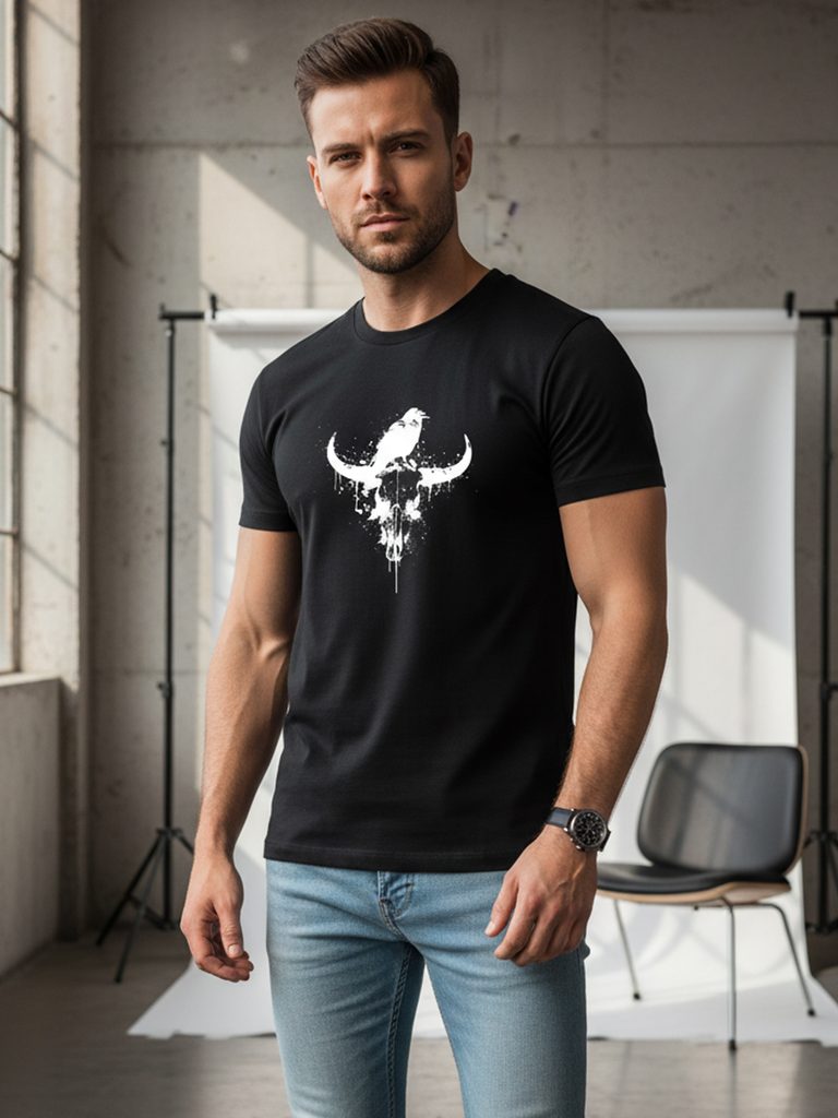 Fekete póló divatos nyomtatással