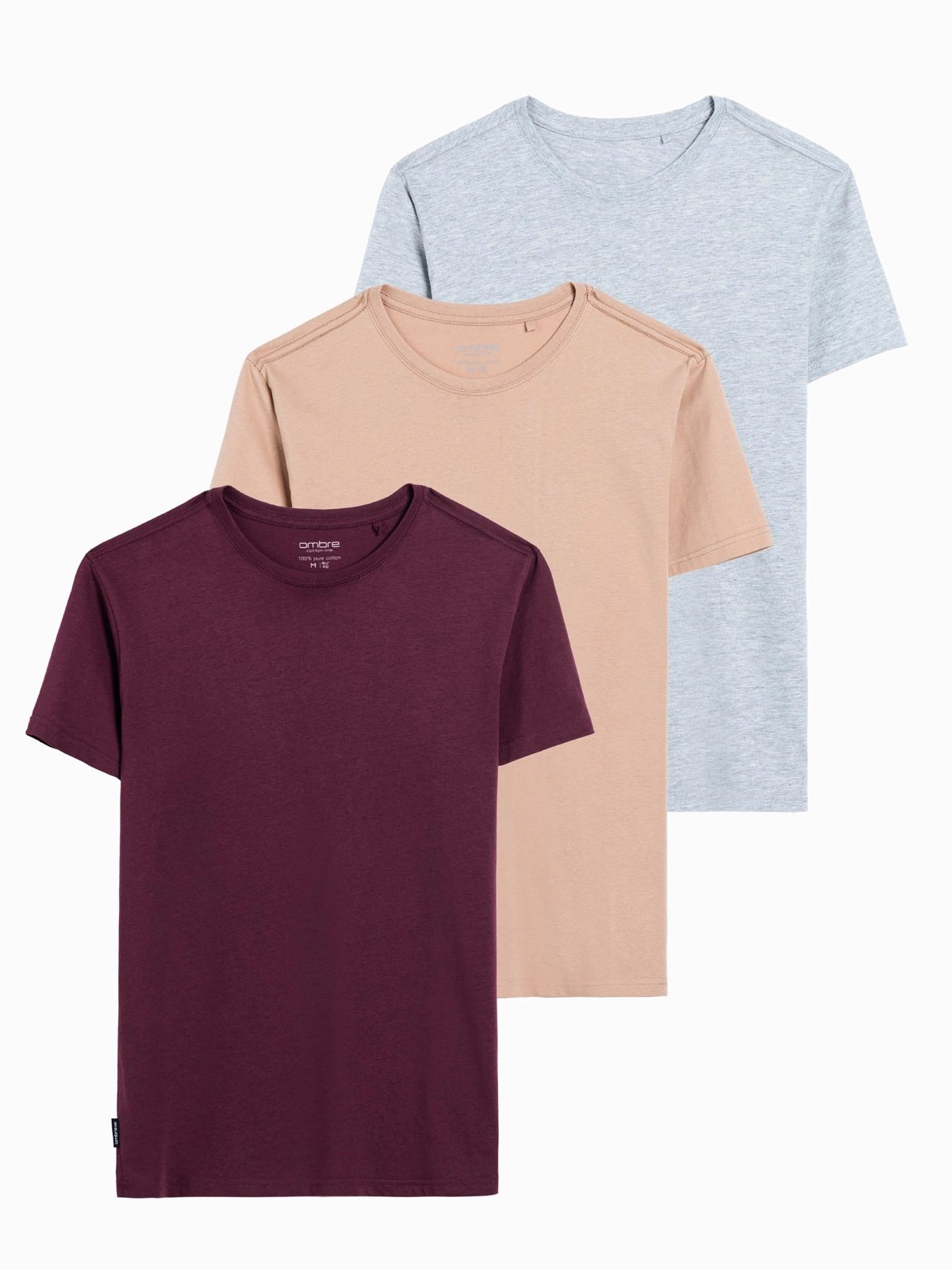 kellemes és kényelmes anyagból készült kerek nyakkivágás a póló minta és minta nélküli a csomag 3 db különböző színű pólót tartalmaz: fehér, sötétkék, bordó anyaga: 100% pamut