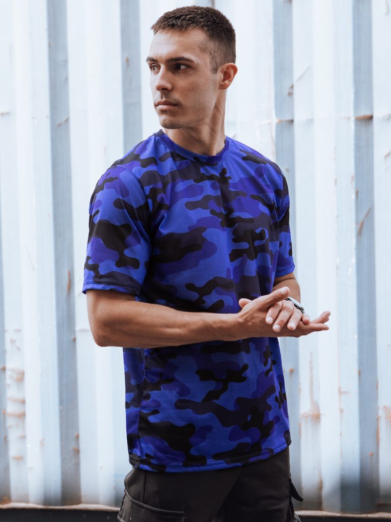 rövid ujjú férfi póló terepszínű minta puha anyagból, kellemes tapintású kerek nyakkivágás anyaga: 95% poliészter, 5% pamut