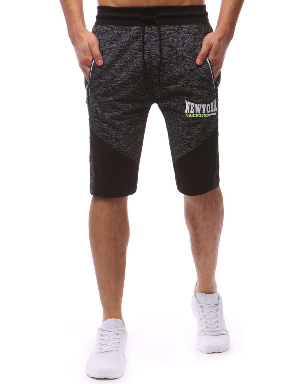 Fekete, stílusos, klasszikus lezsér rövidnadrág. Puha, kellemes viseletet biztosító pamut anyagból készült. Enyhén testhezálló fazon, normál derékmagassággal, szűk lábszárakkal. Kétoldalt cipzáras zsebek. Comb részen felirattal díszítve.