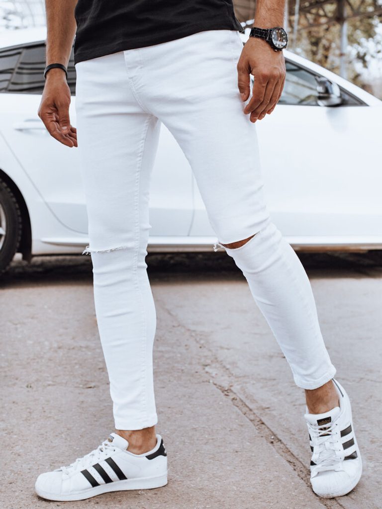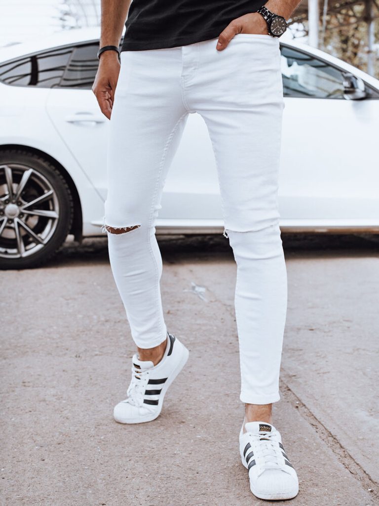 nagyszerű férfi farmer gombos rögzítés kúpos vágás dekoratív karcolások három elülső zseb két hátsó zseb ideális mindennapi viseletre Anyaga: 98% pamut, 2% elasztán