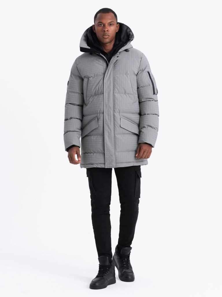 - férfi hosszú téli kabát/ parka kapucnival