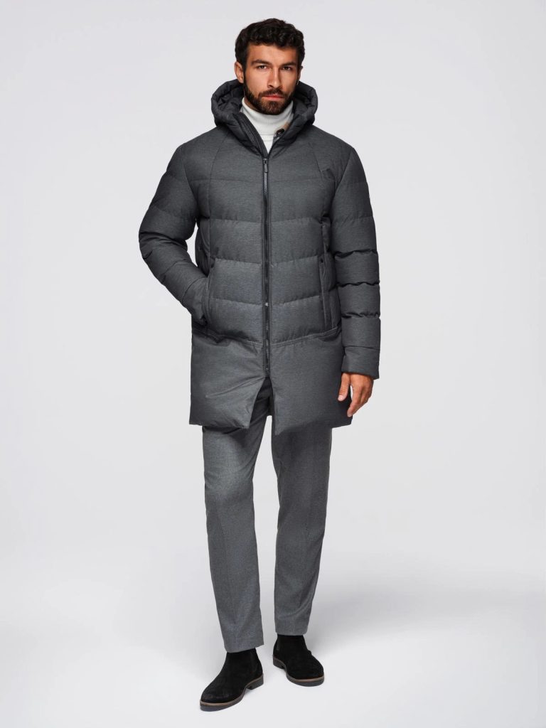 - férfi hosszú téli kabát/ parka kapucnival