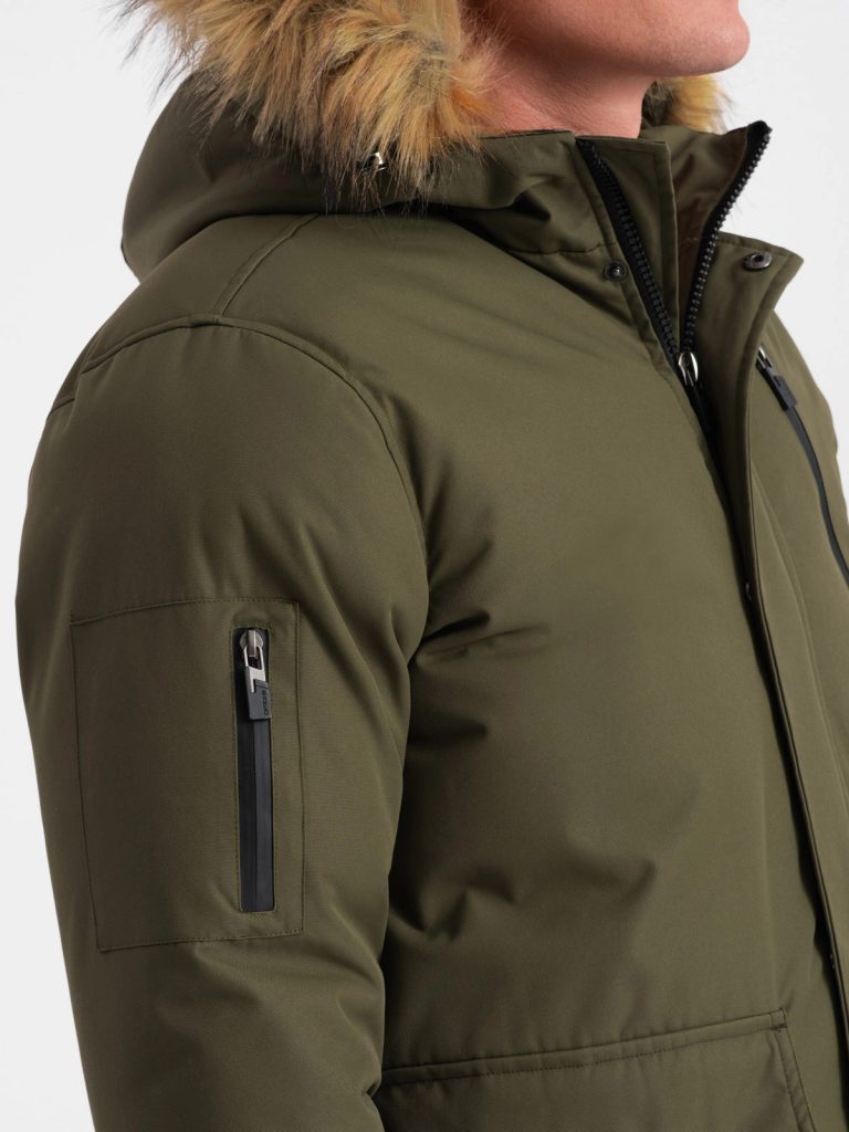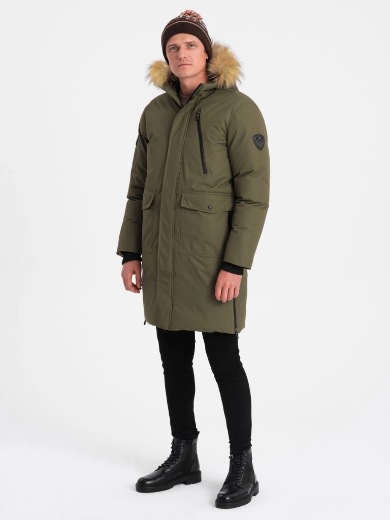 - férfi hosszú téli kabát kapucnival
