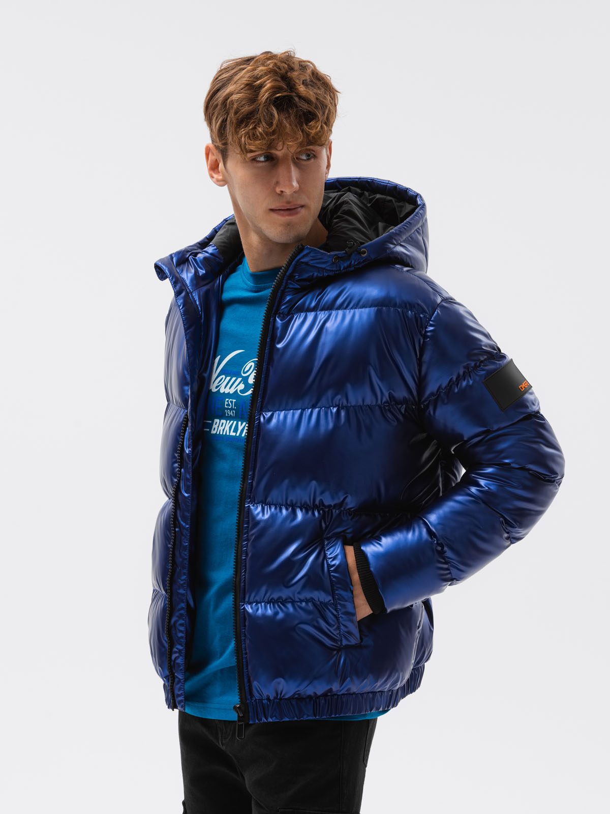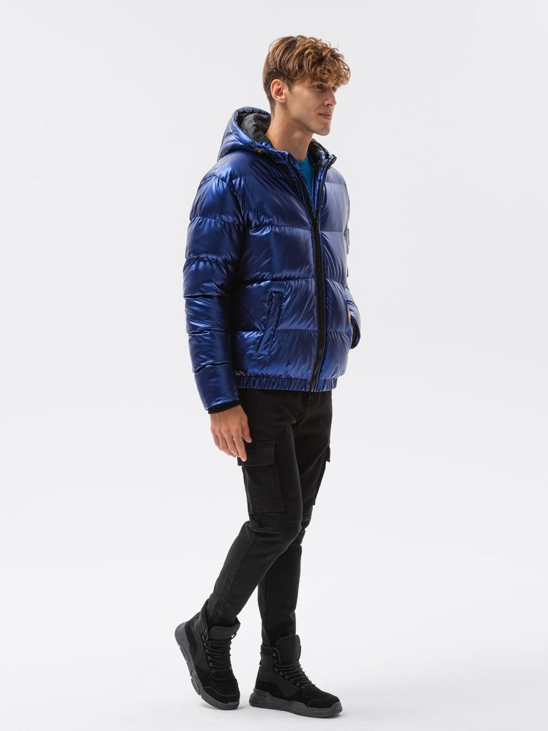 Egyedi kék fényes hatású téli dzseki. Ebben minden férfi csinosan fog mutatni. A steppelt kabát különösen puha, könnyű és meleg köztes réteggel és enyhén karcsúsított szabással készült. Magasan záródó gallér cipzárral és állvédővel. Lekapcsolható kapucnival rendelkezik. Két oldalsó benyulós zsebbel.
