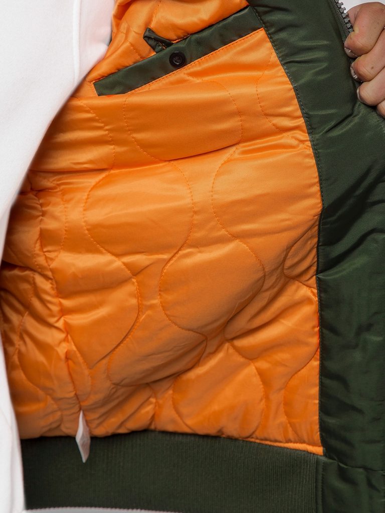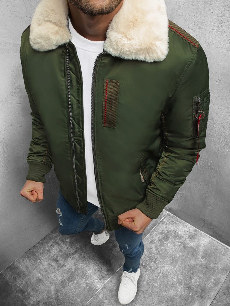 Rendkívül stílusos, modern bomber dzseki. Fehér prémes gallér. Átmeneti időszkra megfelelő viselet. Kiváló minőségű, puha, szép esésű műbőrból készült. Csípőig érő hossz. Elöl cipzáros rögzítés, kétoldalt benyúlós zsebek. Az összes szegély gumírozott passzével végezve.