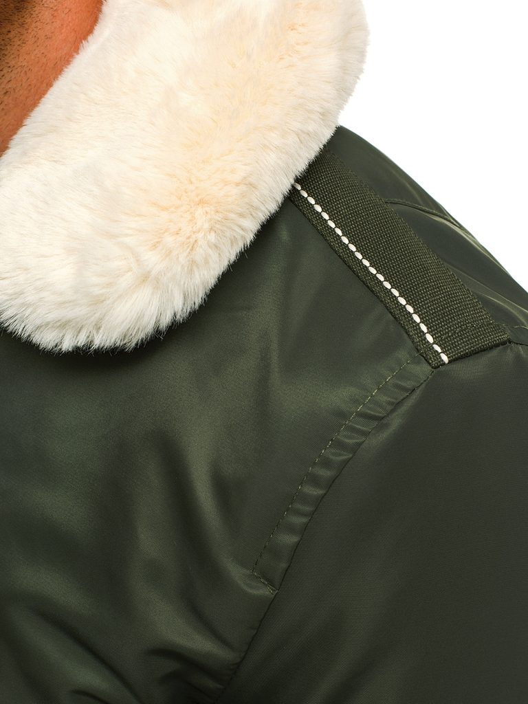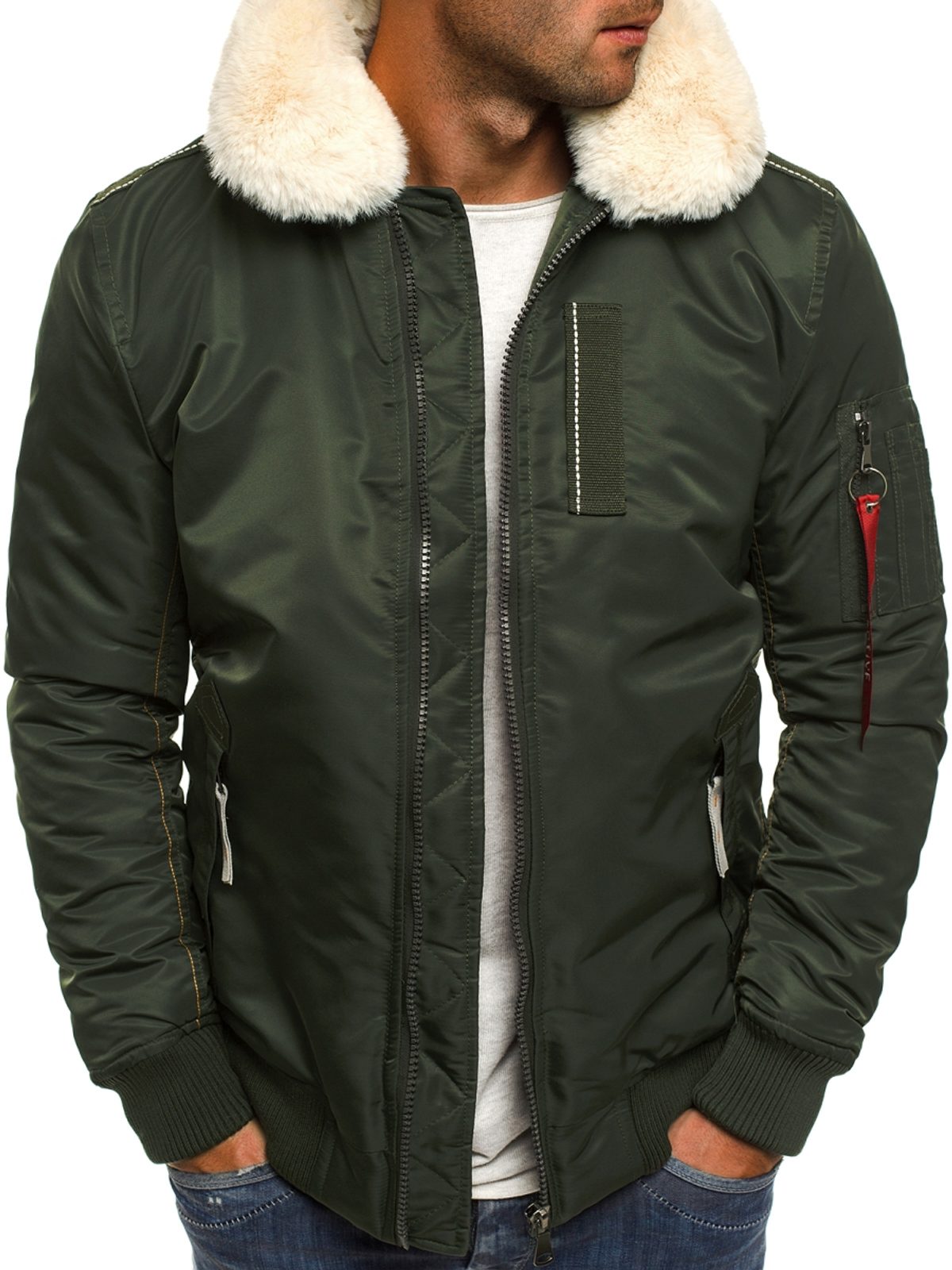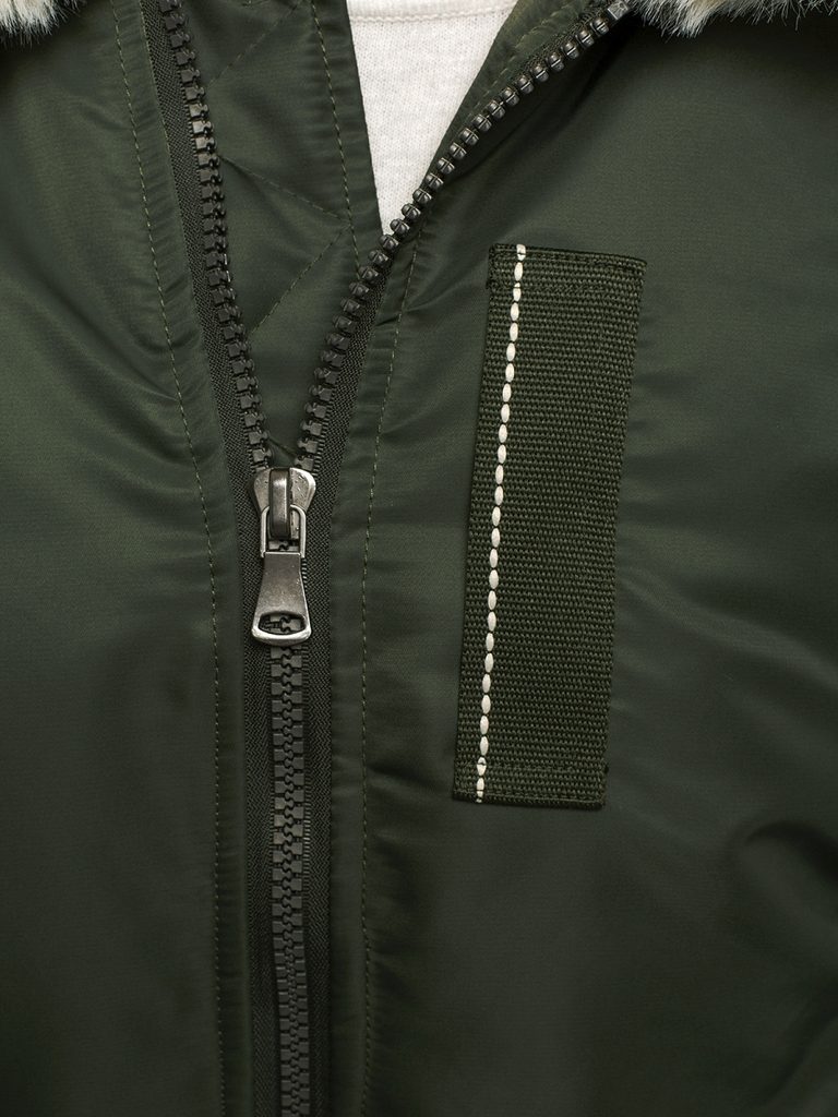 Téli férfi bomber dzseki. Kapucnis fazon, lekapcsolható szőrmével. Ujjain és alján formatartó, bordás kötésű szegőpánttal. Dupla zárással. Cipzáras és gombos záródás. Elől négy zsebbel van ellátva, egy belső zseb. Minőséges alapanyagból készült. Téli időszakra nagyon megfelelő.