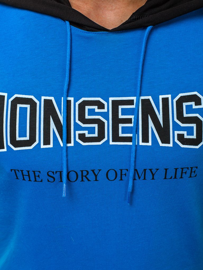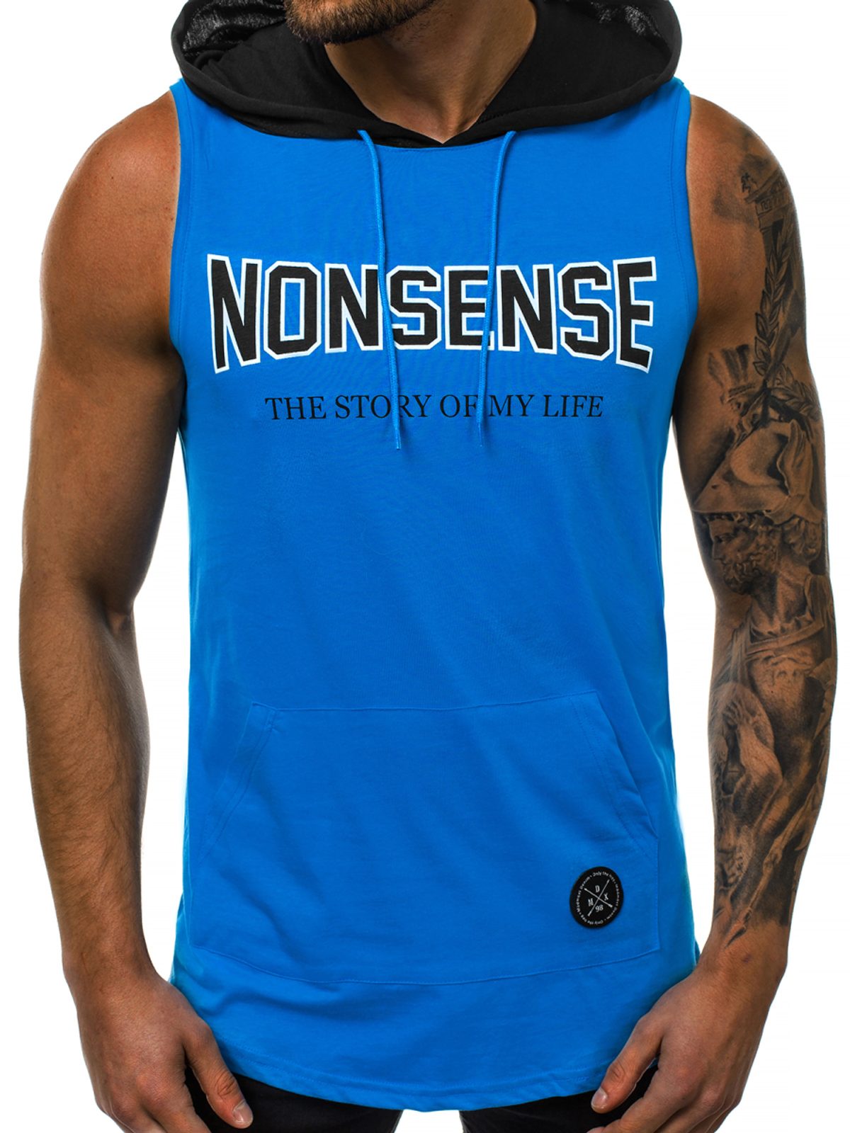 Kapucnis pamut atlétatrikó a modern férfiak számára ajánlott. Kellemes anyaga miatt kedvelt. Kék alapon. Fekete felirat a mallkas részen. Zsebekkel az elején. Fekete kapucnival. Feneket tekaró hossz.