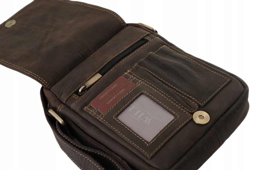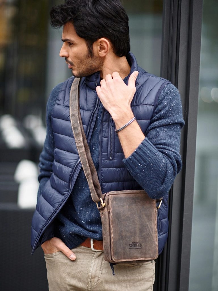 A modern férfi válltáska kiváló minőségű bőrből készült. A táska praktikus zsebekkel és elegendő tárolóhellyel rendelkezik.