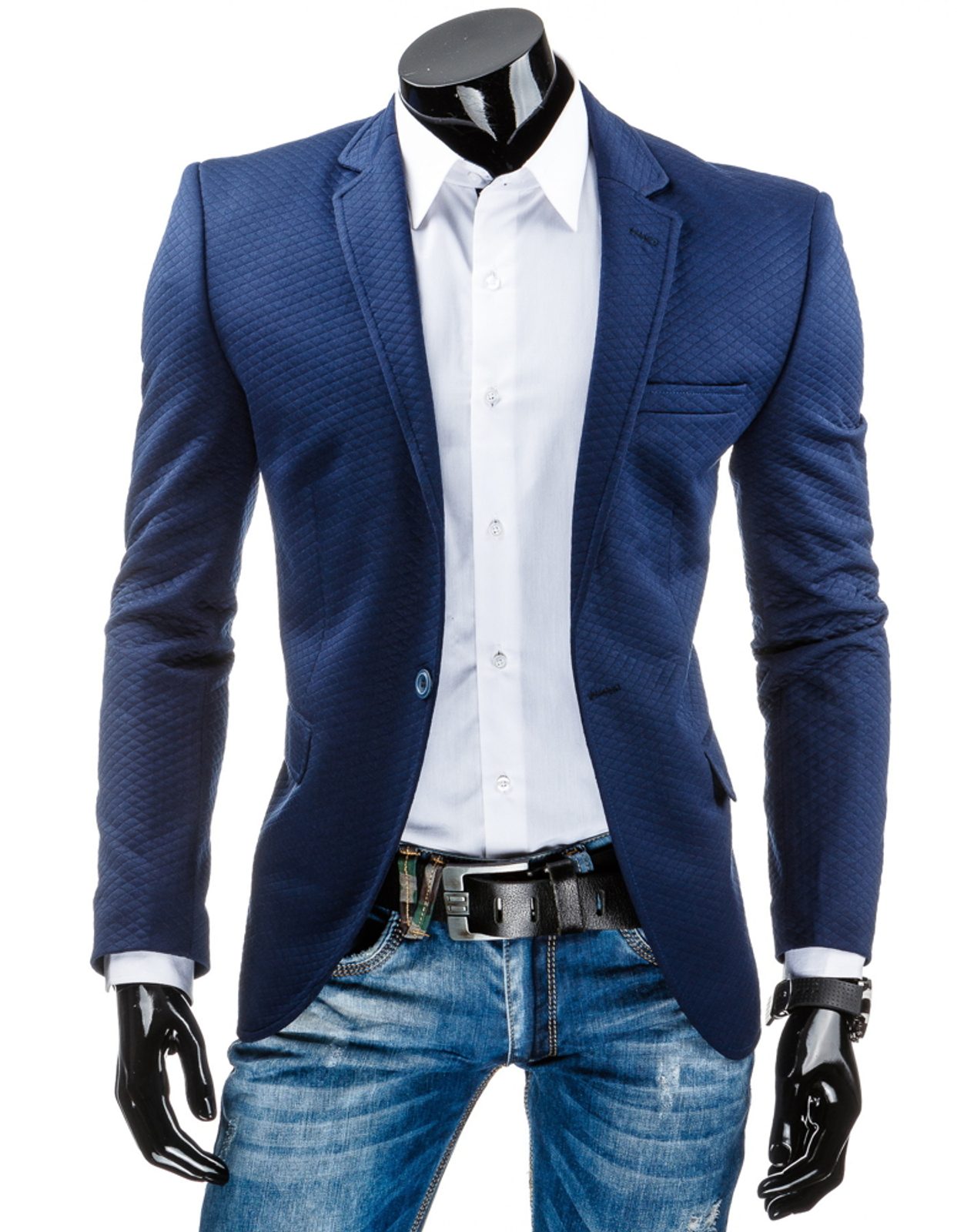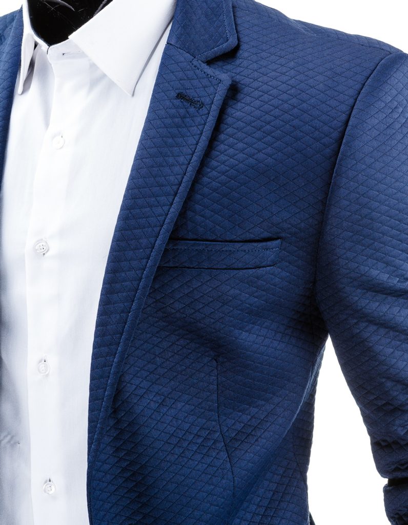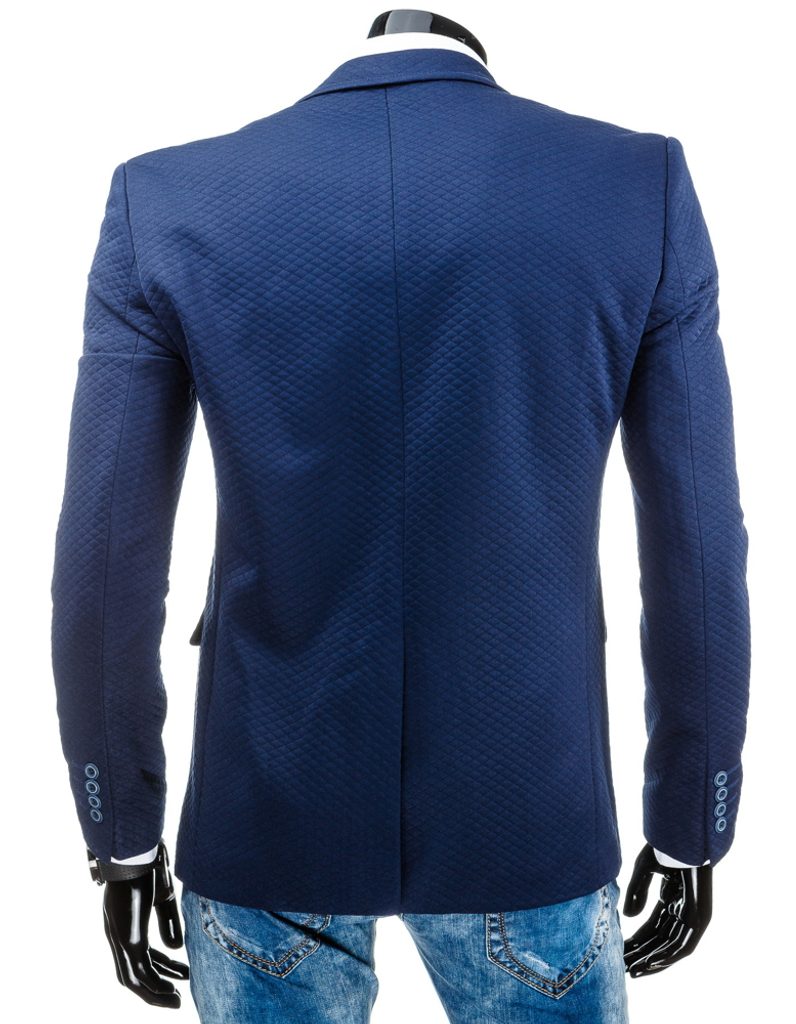 Stílusos sötétkék férfi zakó. Alakkiemelő szabásvonal. Három külső és két belső zsebbel. Két gombbal gombolódó zakó. Gombok találhatóak az ujjakon is.