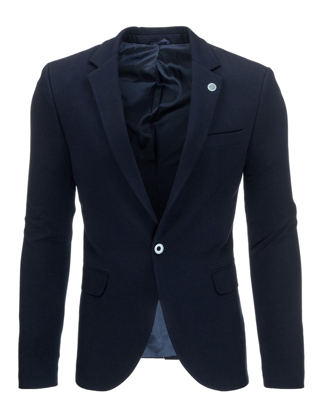 Sportosan elegáns vonzó sötét kék férfi zakó. Egy gombos záródás. Az elején zsebekkel ellátva. A zsebek felett dísz zsebes díszítés. Klasszikus fazon. Kényelmes pamut anyagból, mely komfortérzetet nyújt viselőjének. Nagyon jól kombinálható farmernadrággal is. mindennapi viseletre.